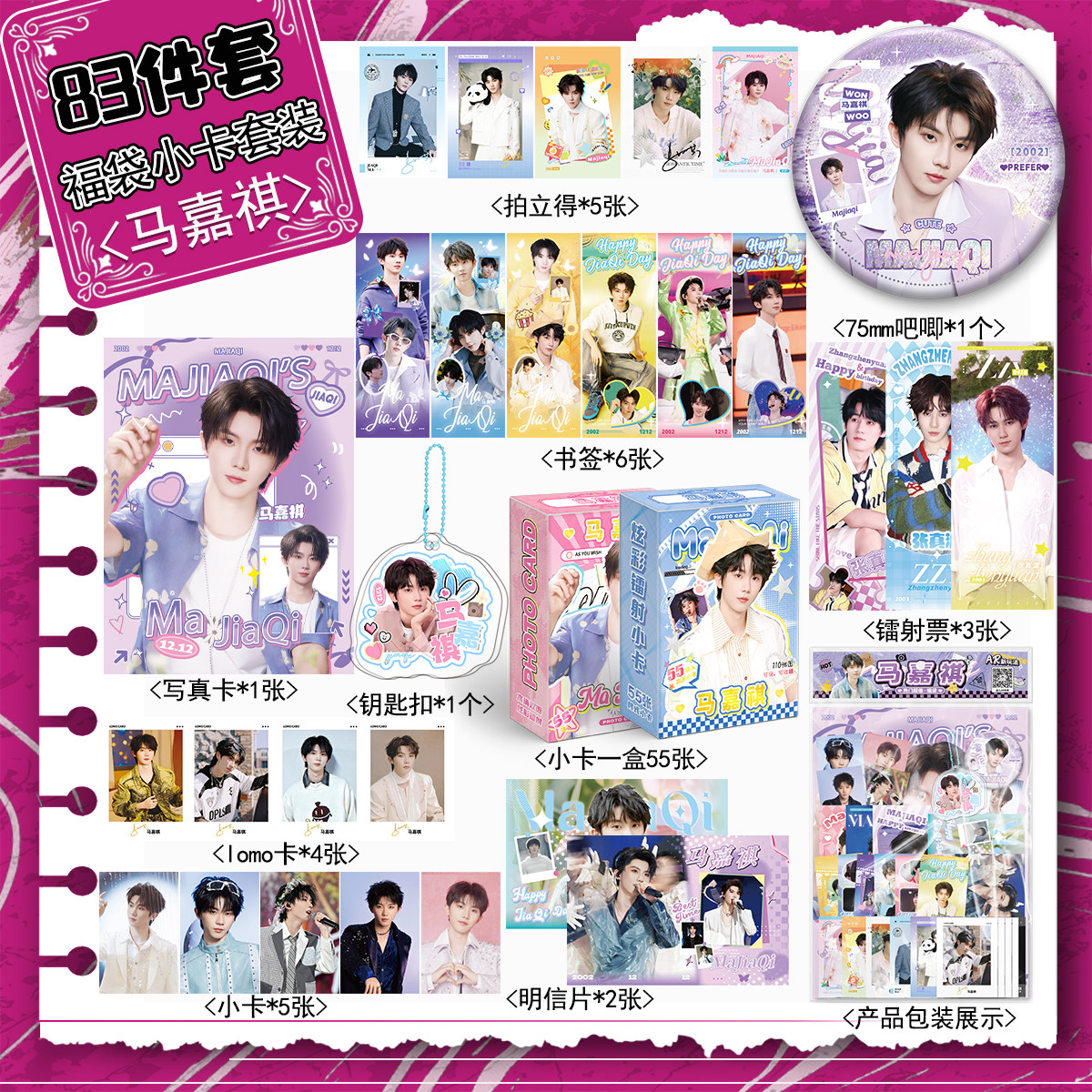 马嘉祺周边宠粉福利84件套装镭射票吧唧拍立得小卡摩天轮写真书签