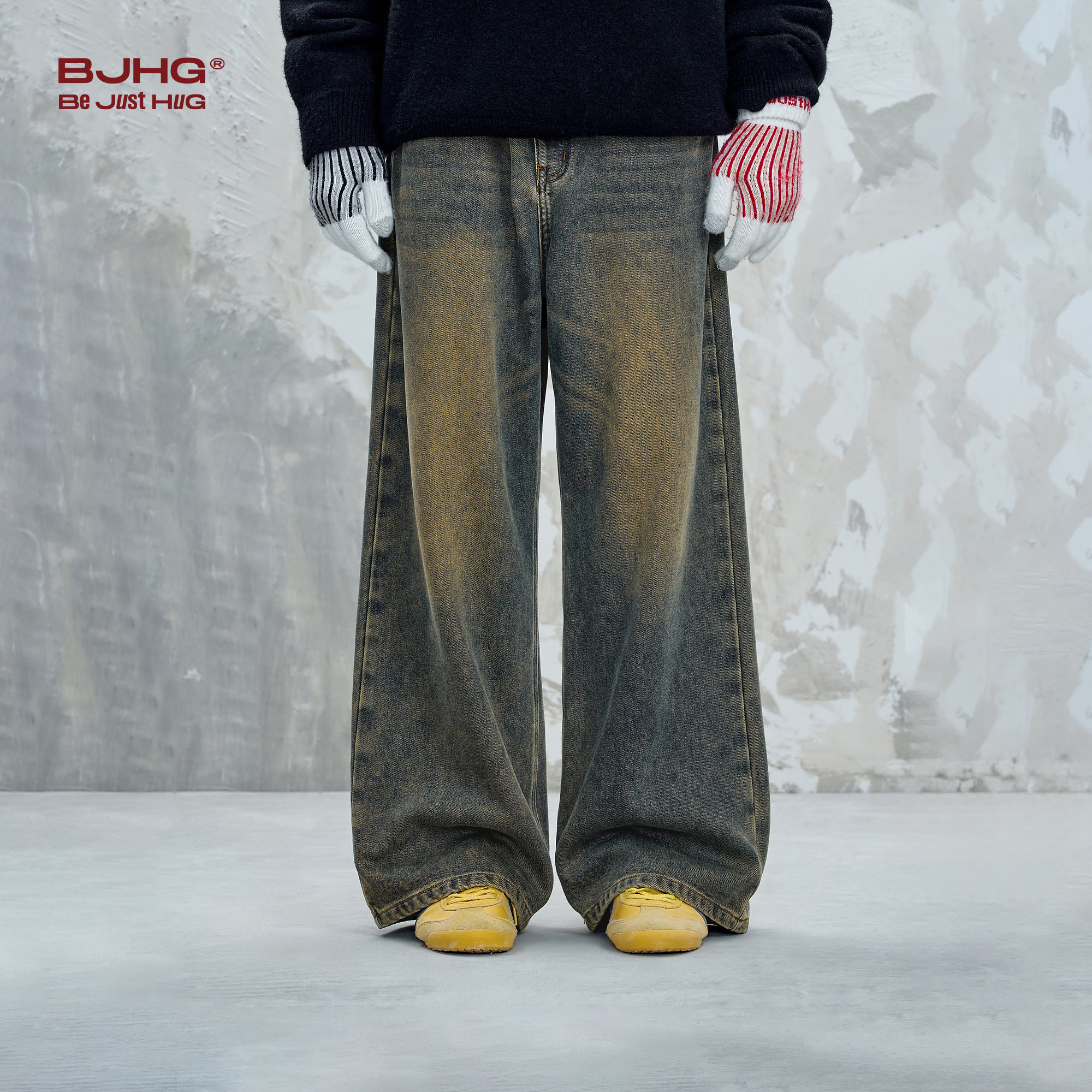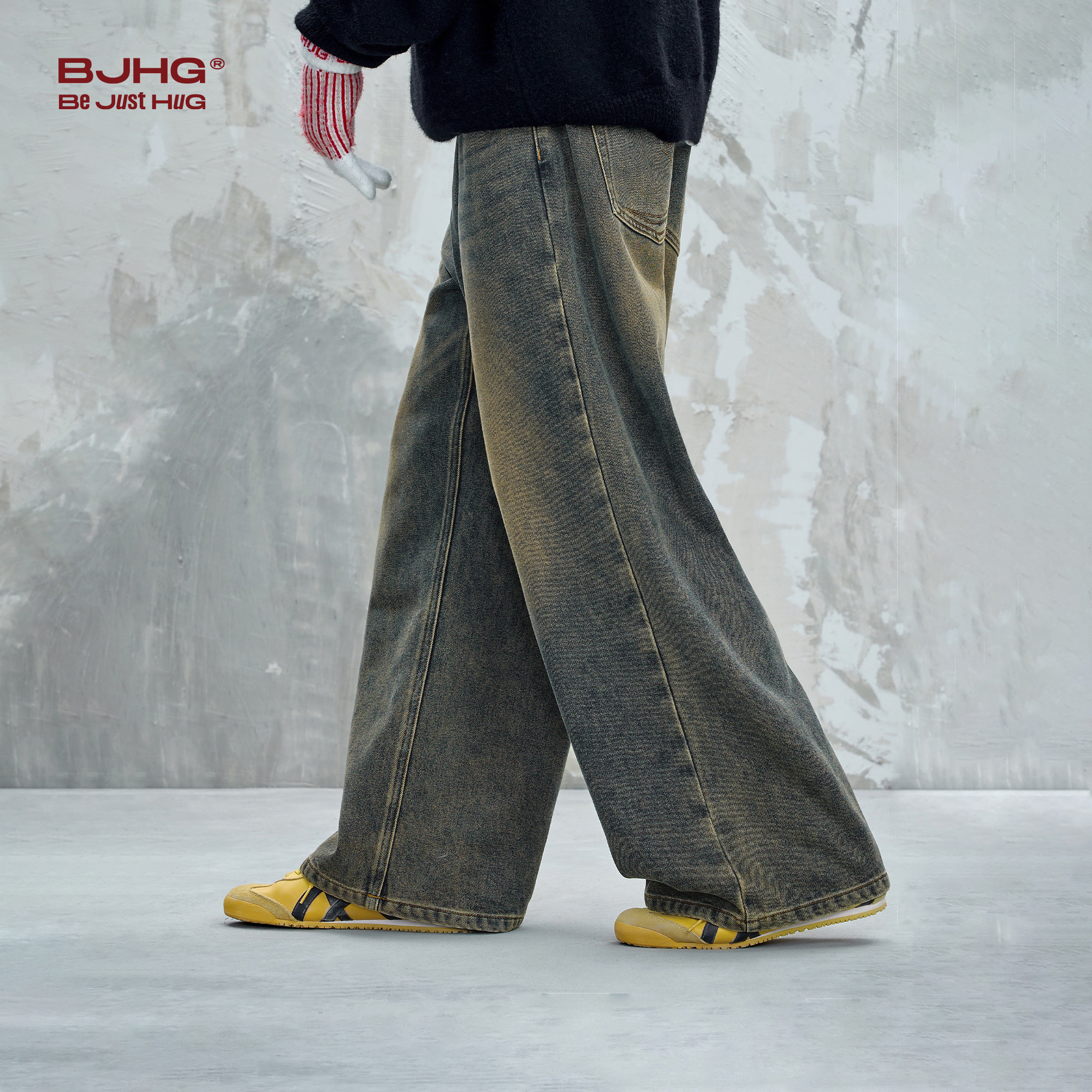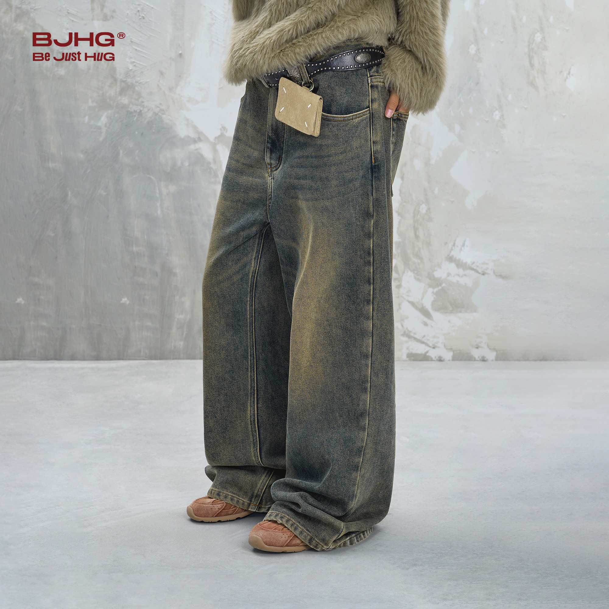 BJHG不计后果美拉德复古水洗牛仔裤男款冬季裤子直筒加绒牛仔裤女