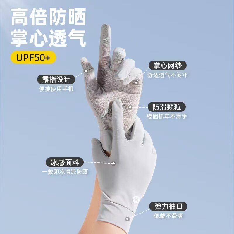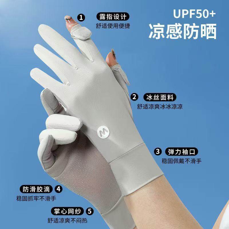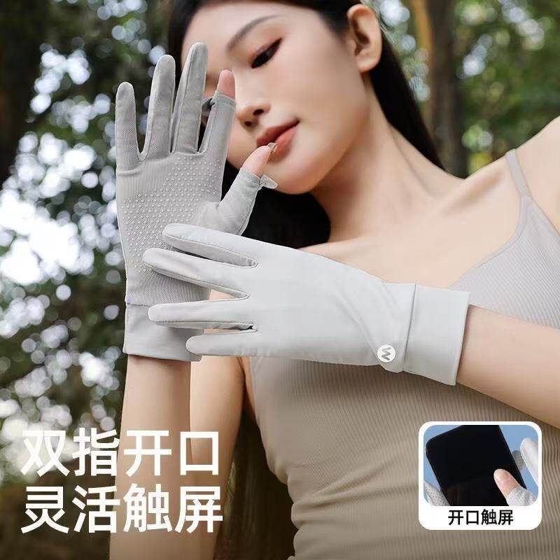 骑行冰丝防晒手套女款薄款夏季防紫外线透气防滑漏指触屏女士骑车