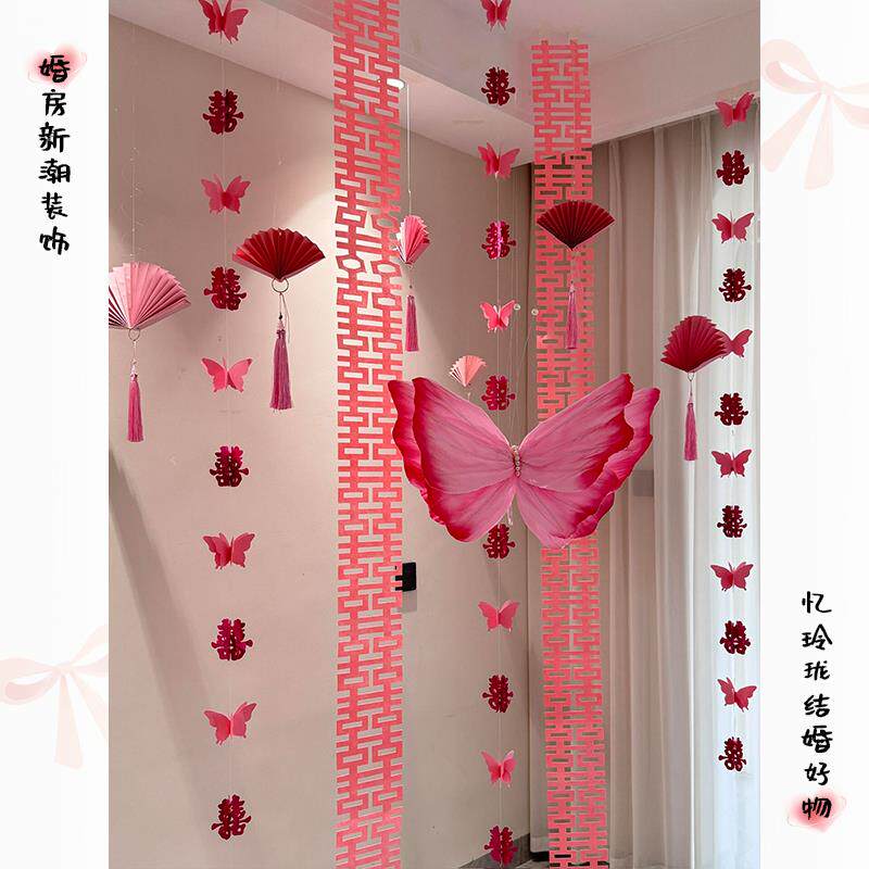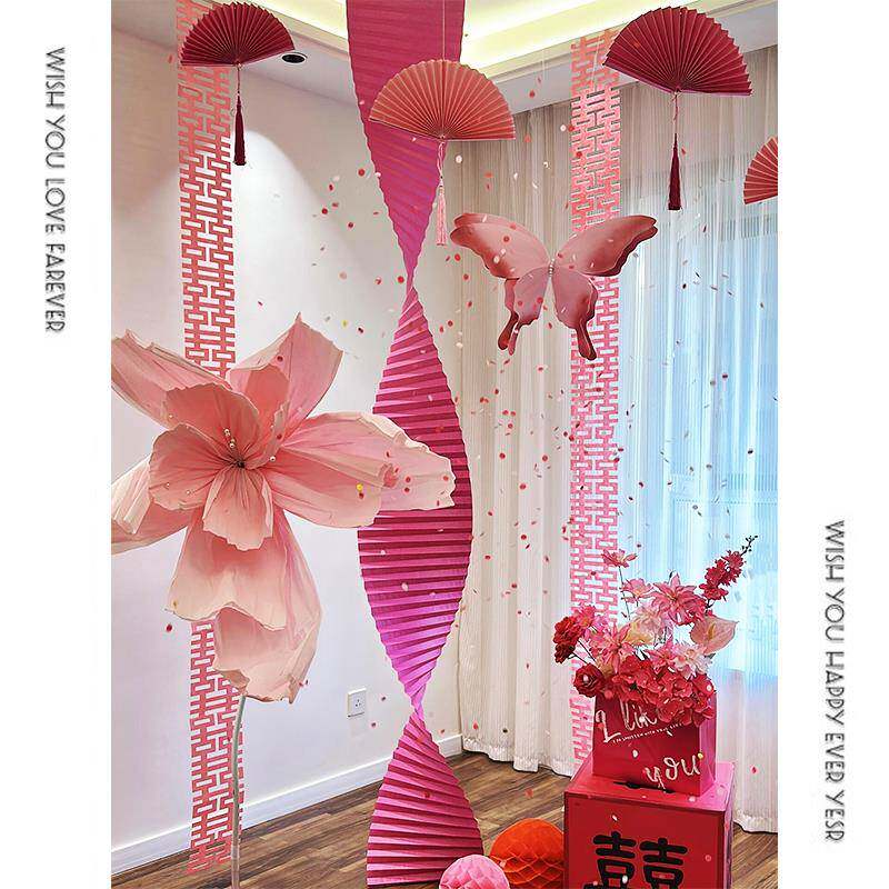 婚礼布置装饰客厅拍照蝴蝶结婚背景墙婚房套装喜庆婚庆拉花折纸