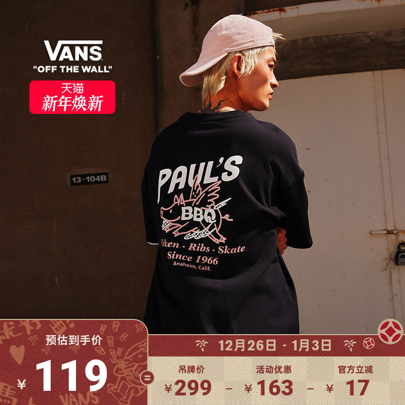 Vans范斯官方 男女情侣短袖T恤烧烤BBQ飞猪印花