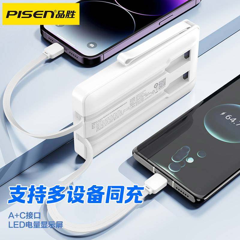 【充电宝3C认证】品胜20000毫安充电宝自带四线大容量超薄小巧便携政府补贴移动电源适用苹果17华为可上飞机