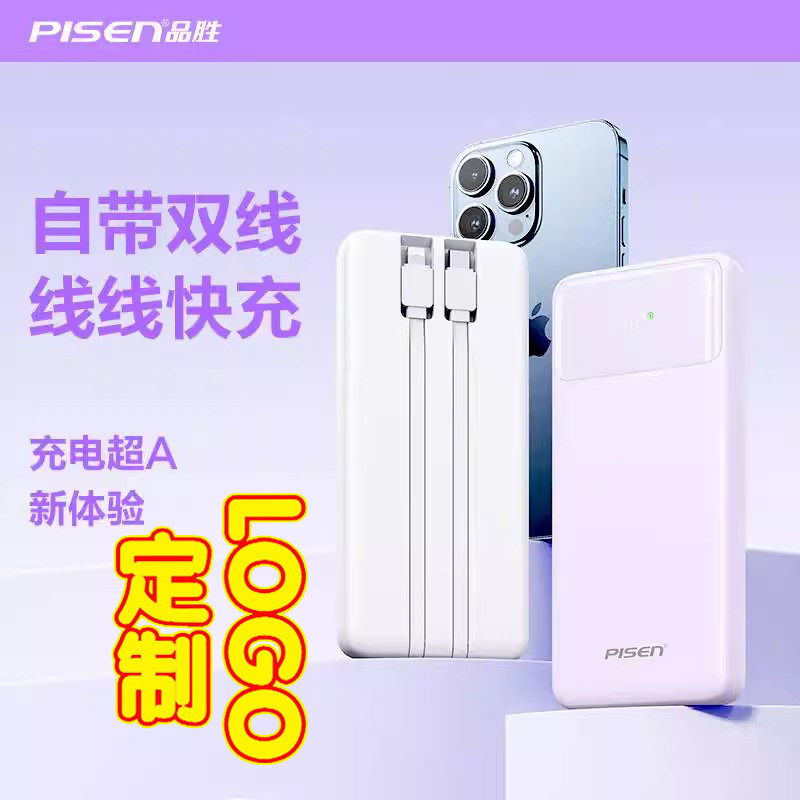 【国家3C认证】品胜迷你便携自带线充电宝10000毫安超薄PD快充移动电源适用于苹果安卓华为定制logo可上飞机