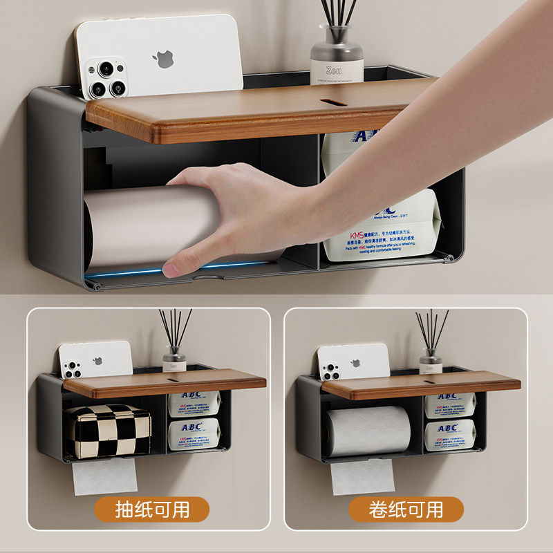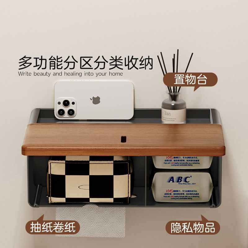 卫生间厕纸盒壁挂式免打孔厕所洗手间洗漱台防水纸巾置物架浴室