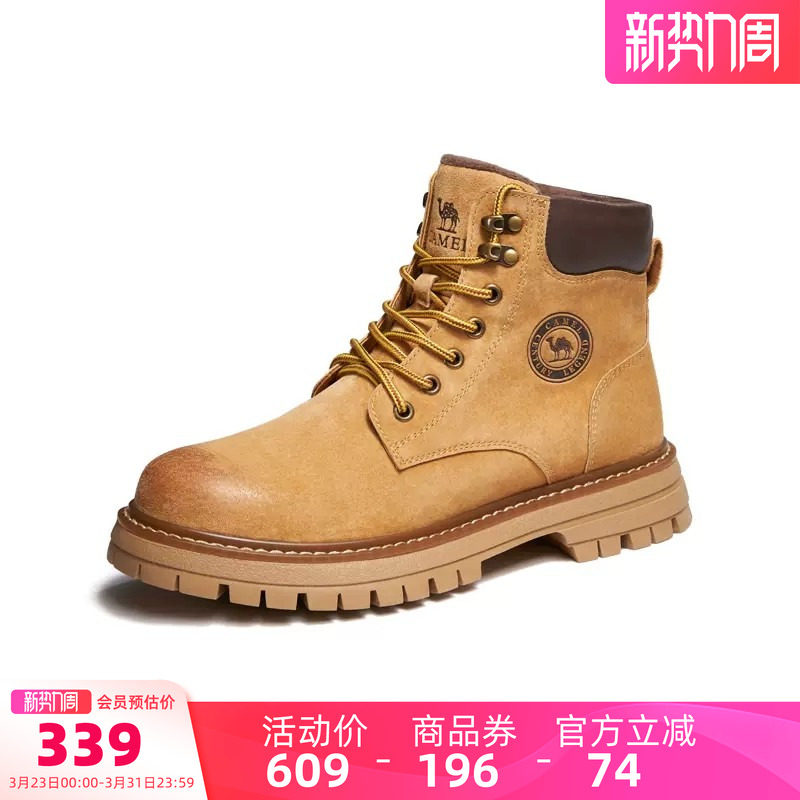 骆驼男鞋马丁靴2026新款百搭高帮休闲工装靴女潮流复古户外大黄靴