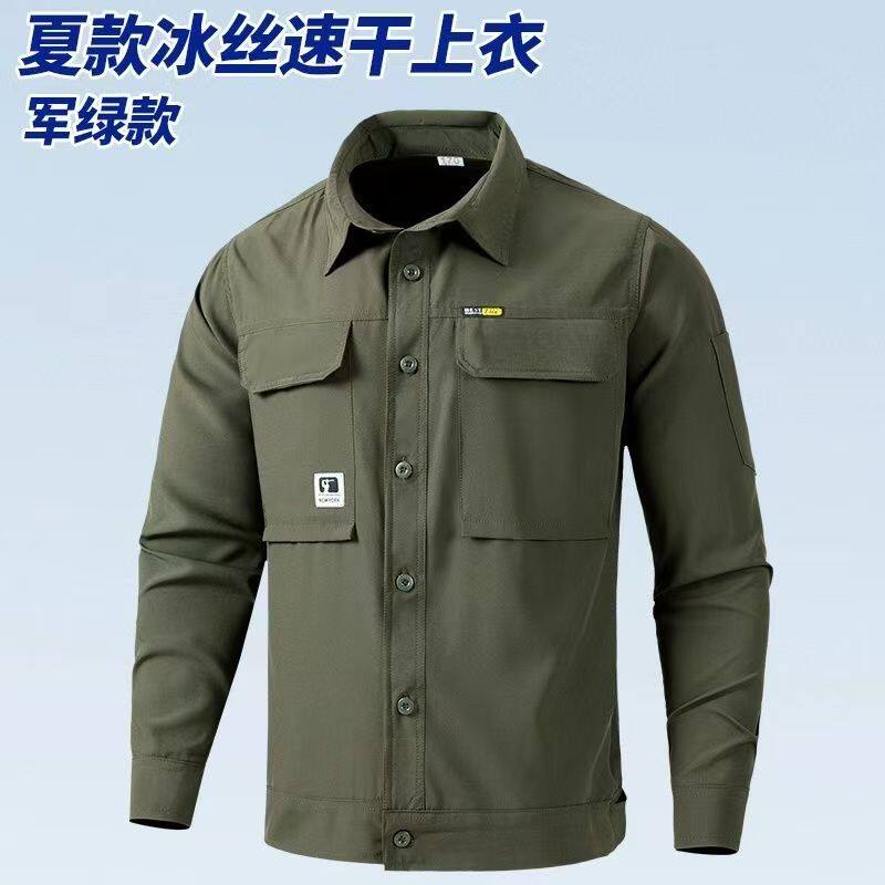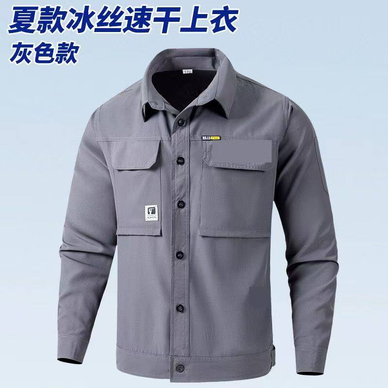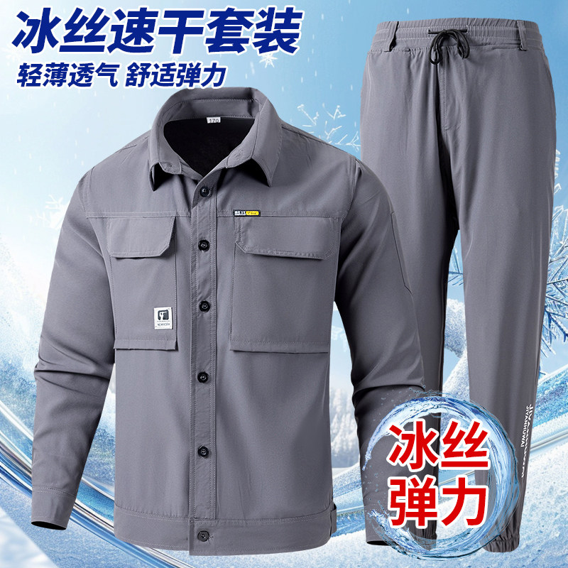 夏季冰丝速干弹力工作服男士休闲户外车间透气轻薄耐磨工装劳保服