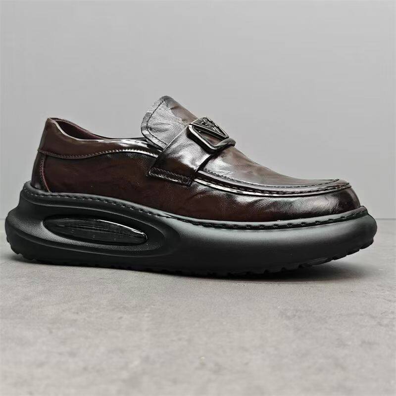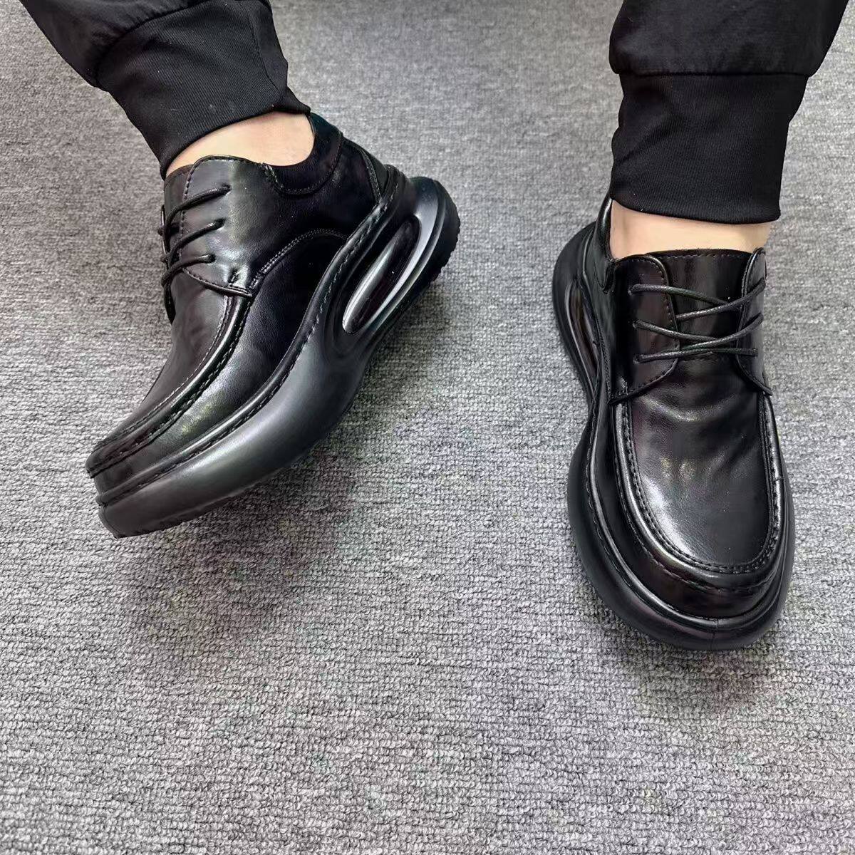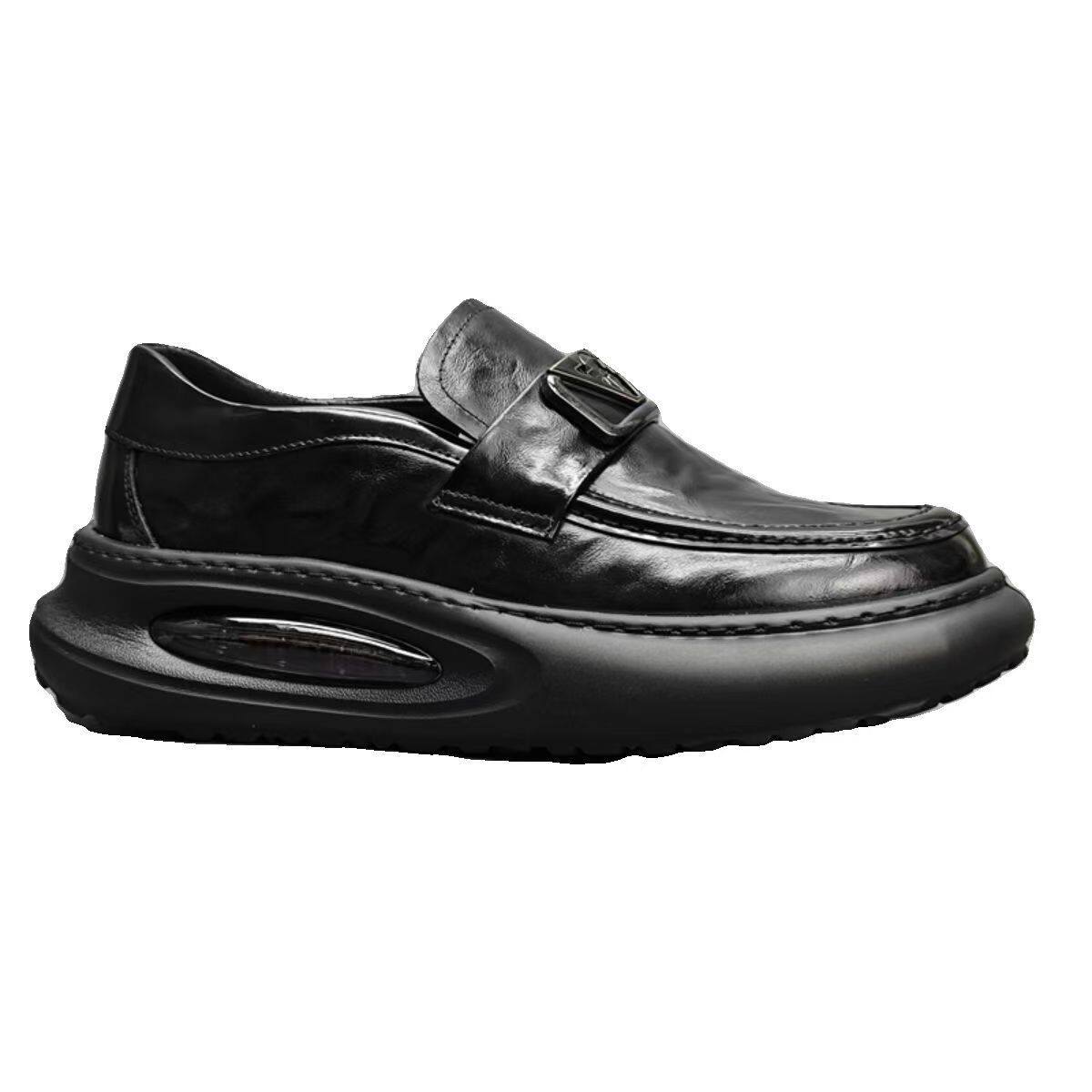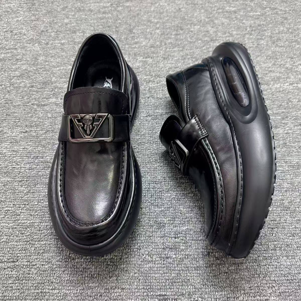 欧洲站男鞋春季新款潮鞋真皮乐福鞋气垫厚底增高运动商务休闲皮鞋
