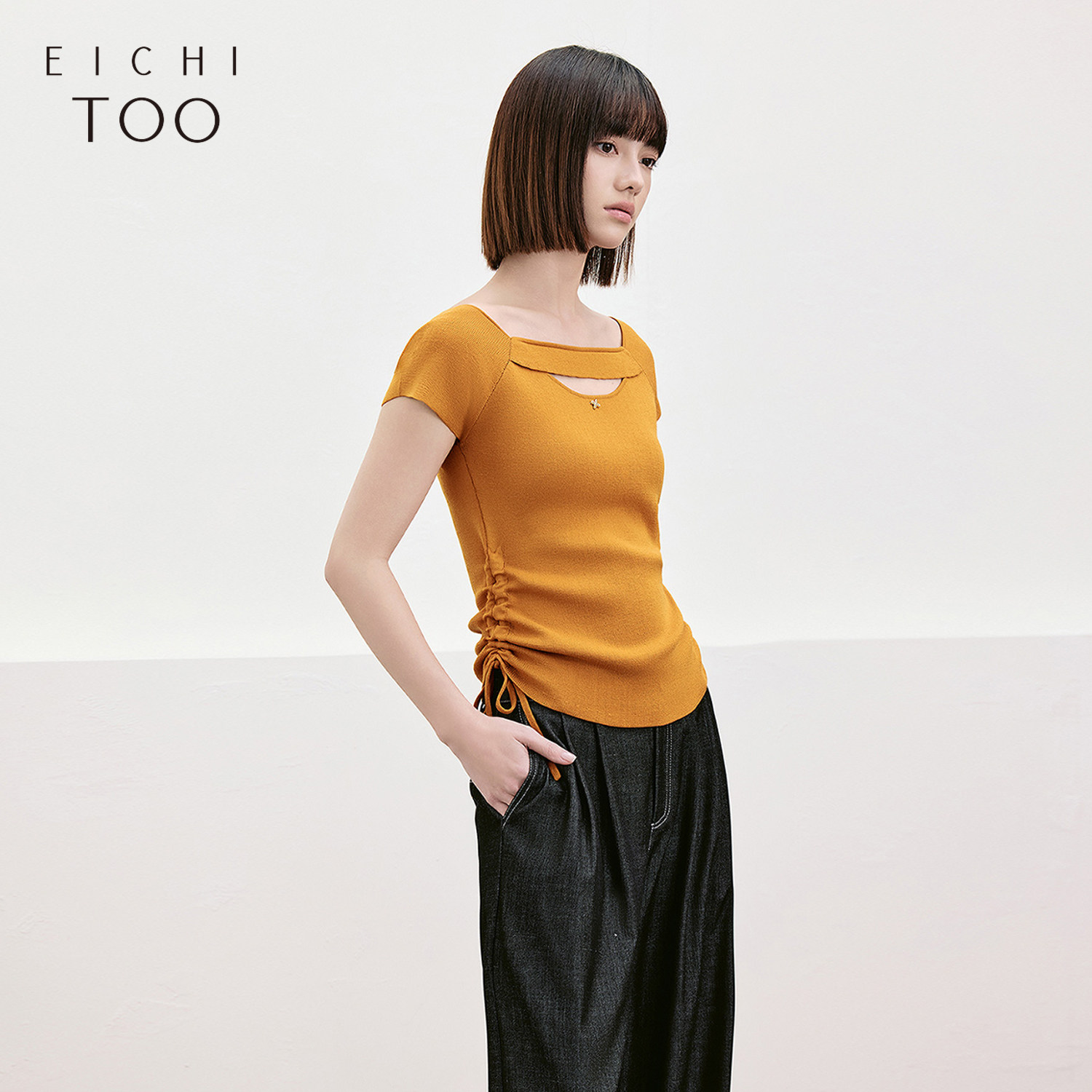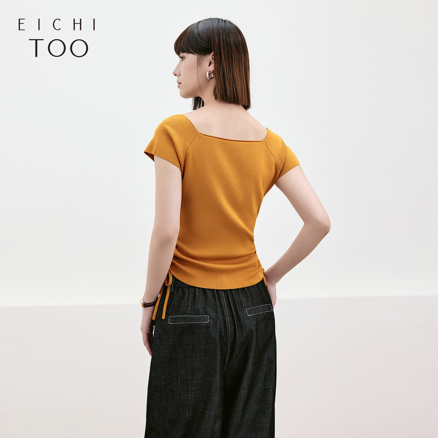 爱居兔设计感短袖针织衫女夏季新款系带收腰显瘦T恤