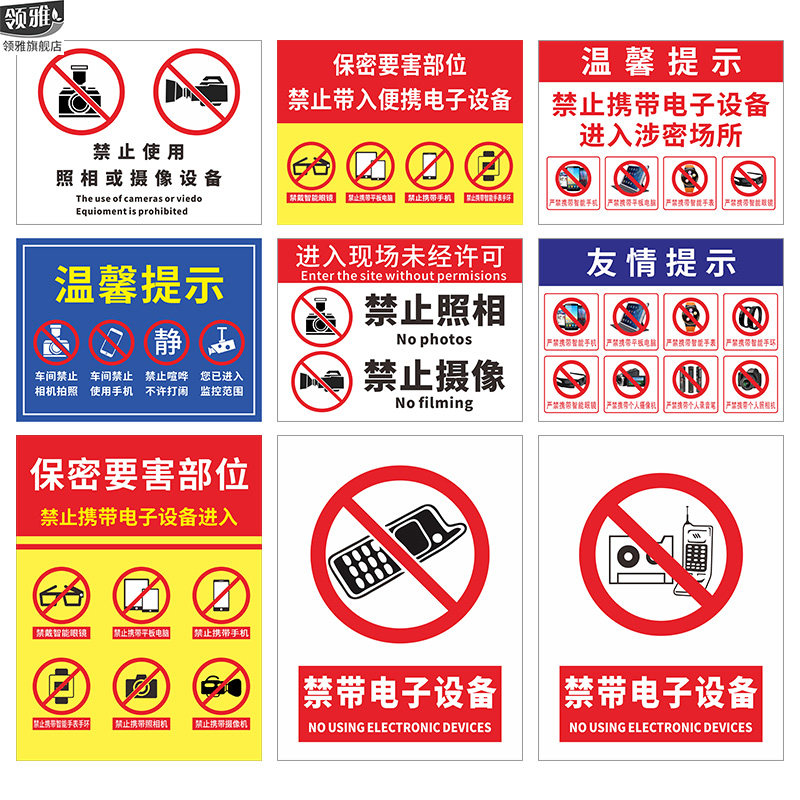 禁止携带电子设备提示标识牌禁止使用智能设备涉密重地禁止拍照告示牌未经许可禁止进入警示贴纸广告标牌定制