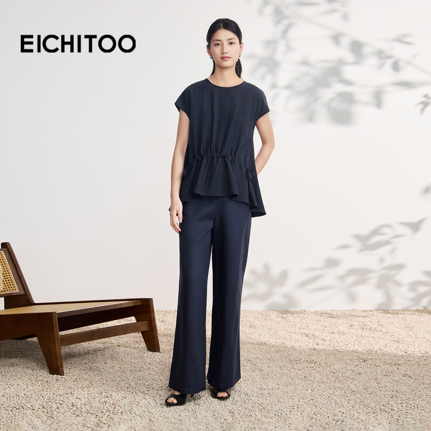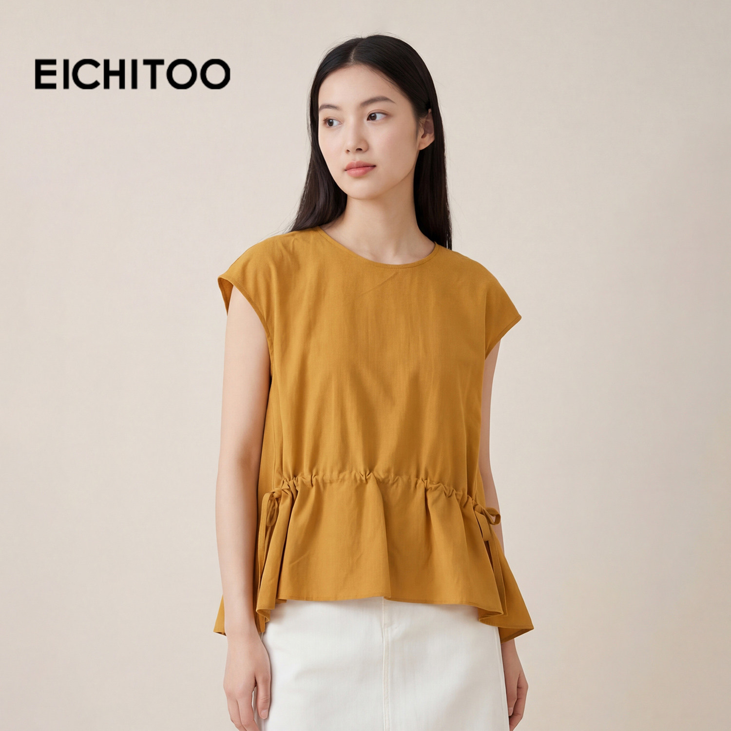爱居兔多色休闲气质雪纺衫2026年夏季新款女圆领收腰宽松短上衣