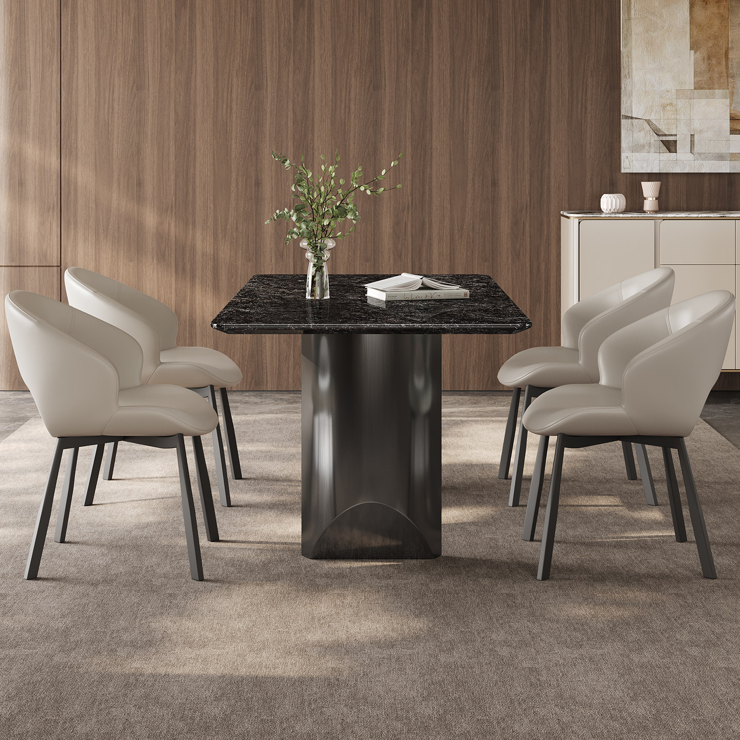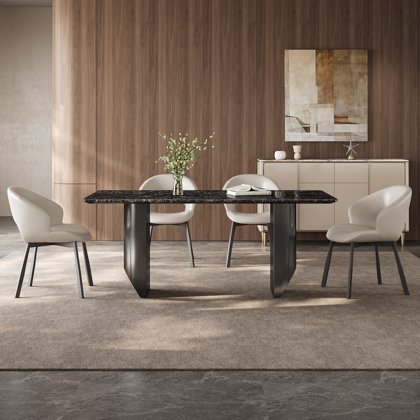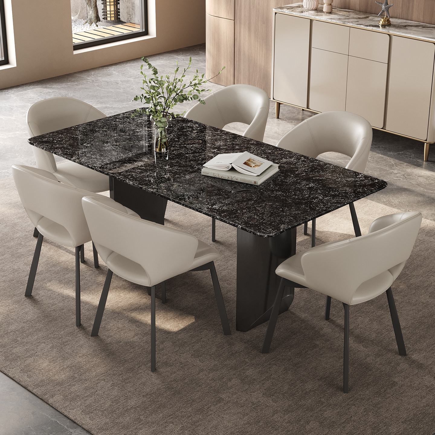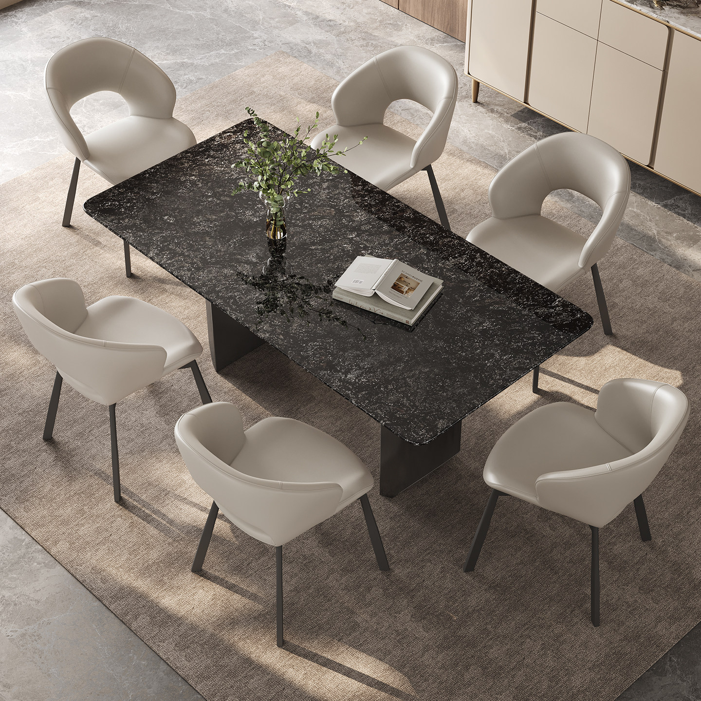 铂金钻奢石餐桌长方形高端2026新款意式轻奢高级感天然大理石餐桌