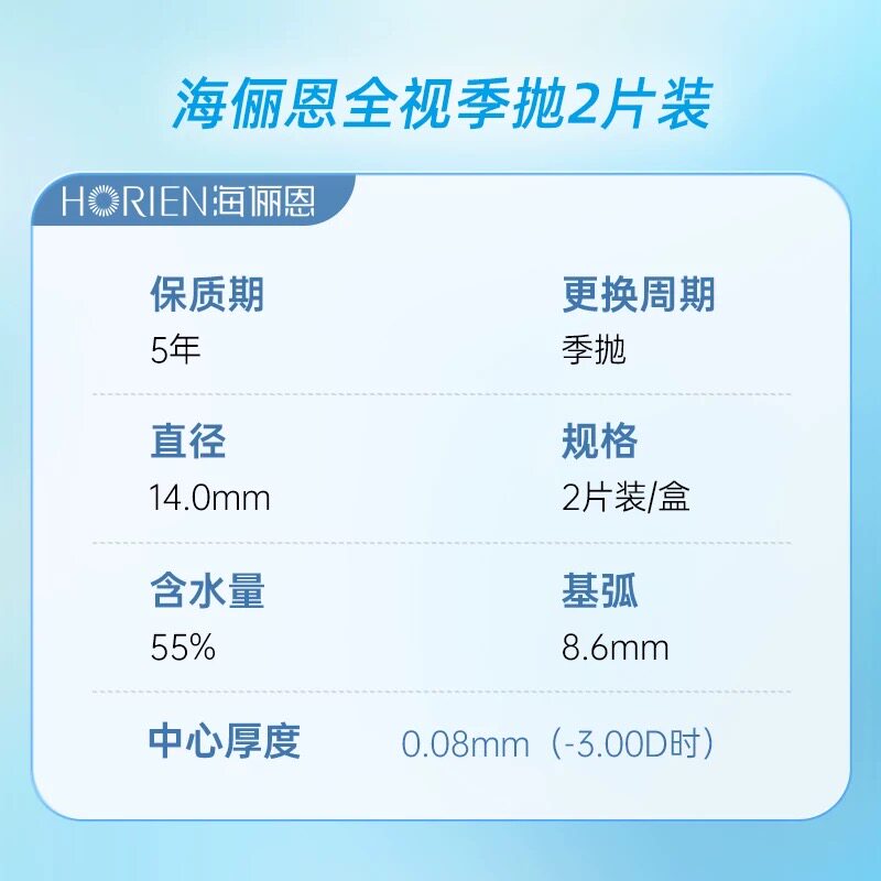 海俪恩全视隐形眼镜半年抛2片近视透明隐性眼镜官方旗舰店正品