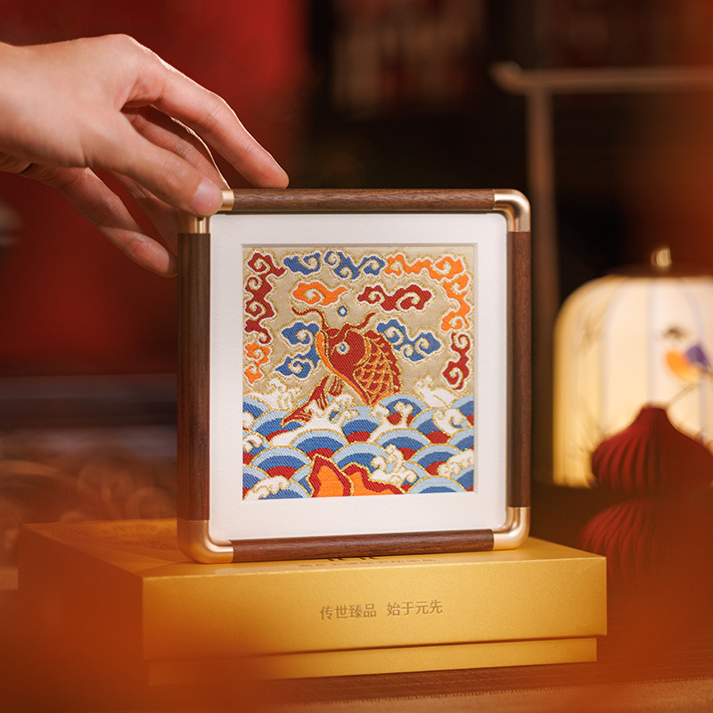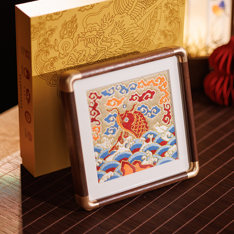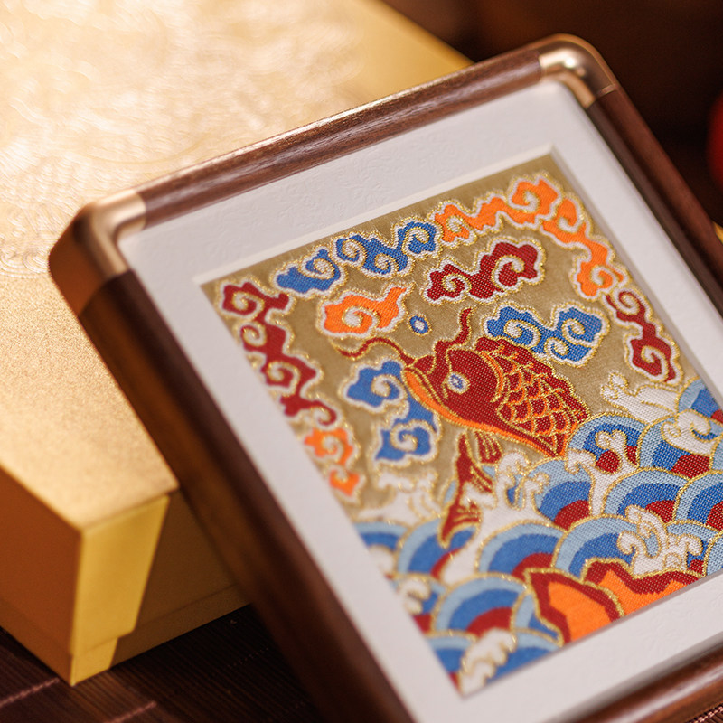鱼跃龙门南京云锦研究所手工摆件中国特色工艺品商务礼品礼物送人