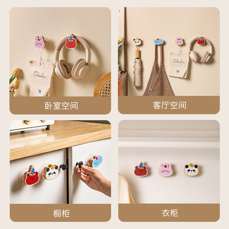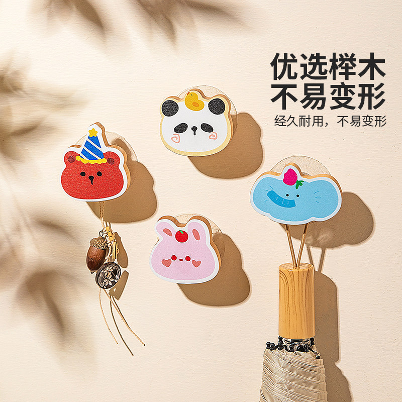 摩登主妇动物派对实木挂钩免打孔强力承重墙壁门后衣帽无痕贴粘钩