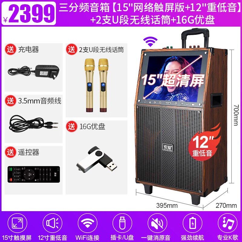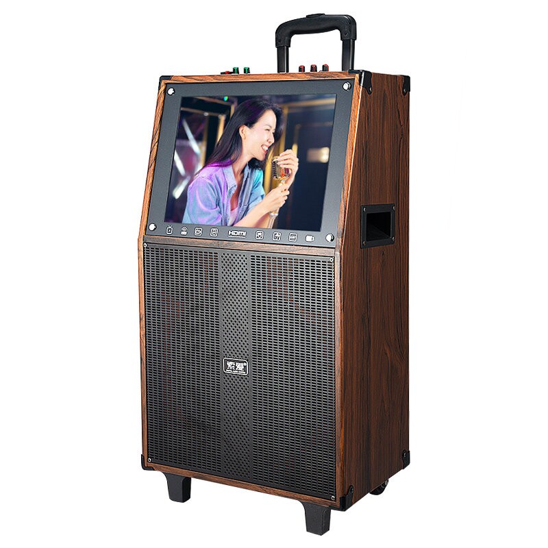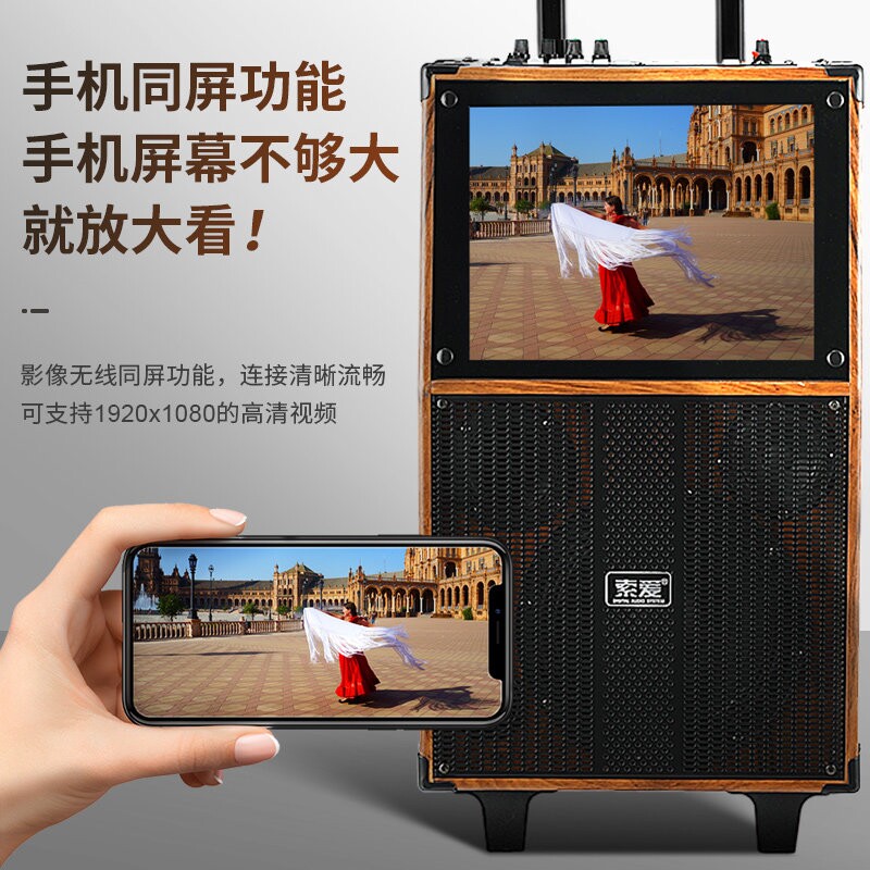 索爱广场舞音响带显示屏幕移动卡机户外便携拉杆视频音箱拉OK一体