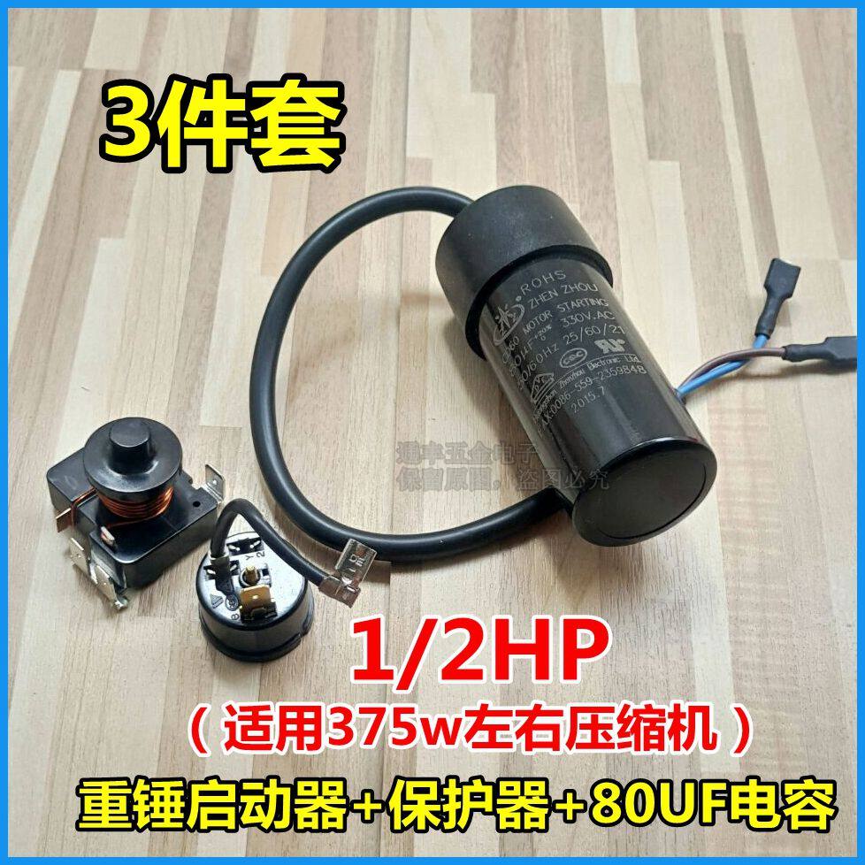 冰箱冷柜压缩机带重锤式启动器1/2hp 1/3hp电容80uf 套件