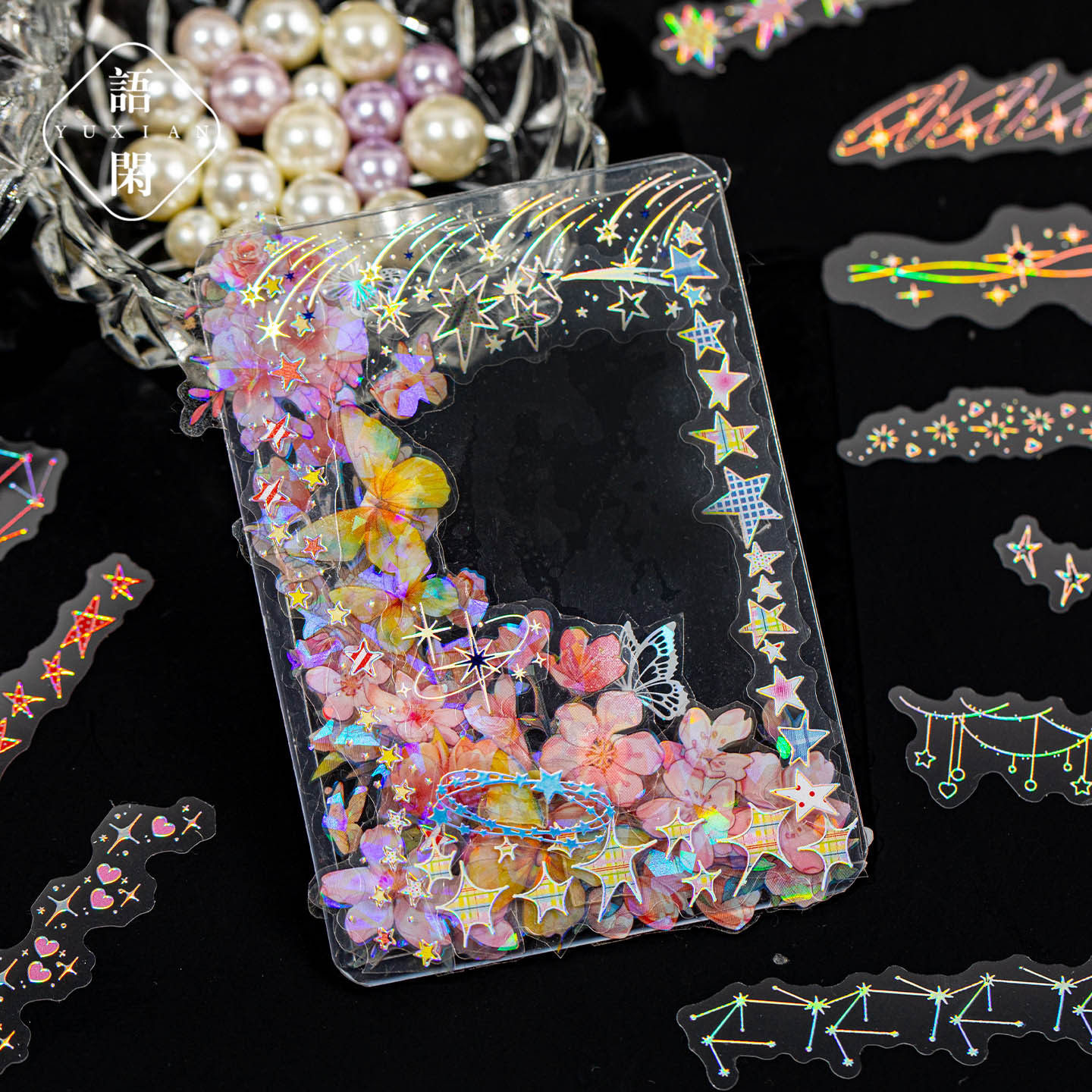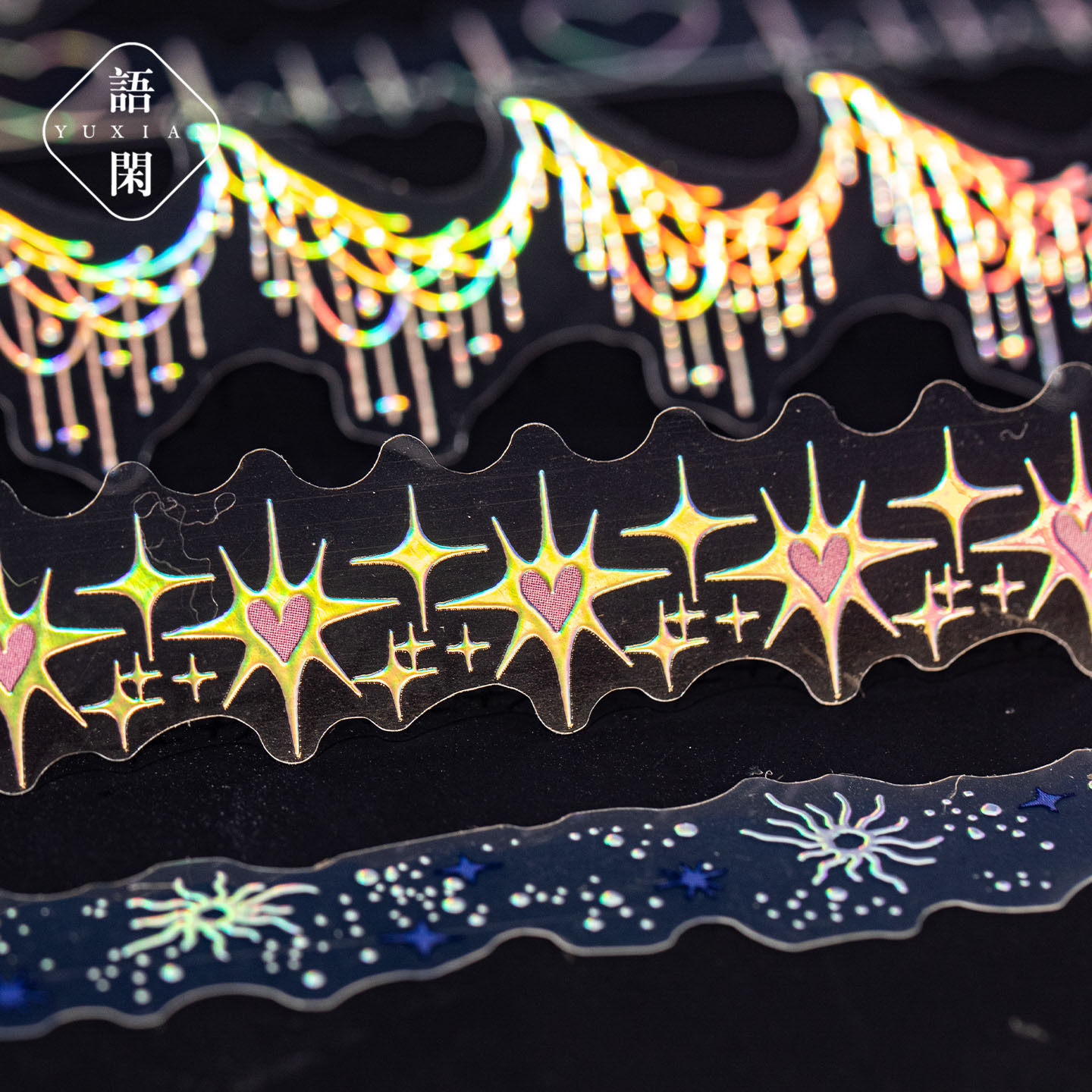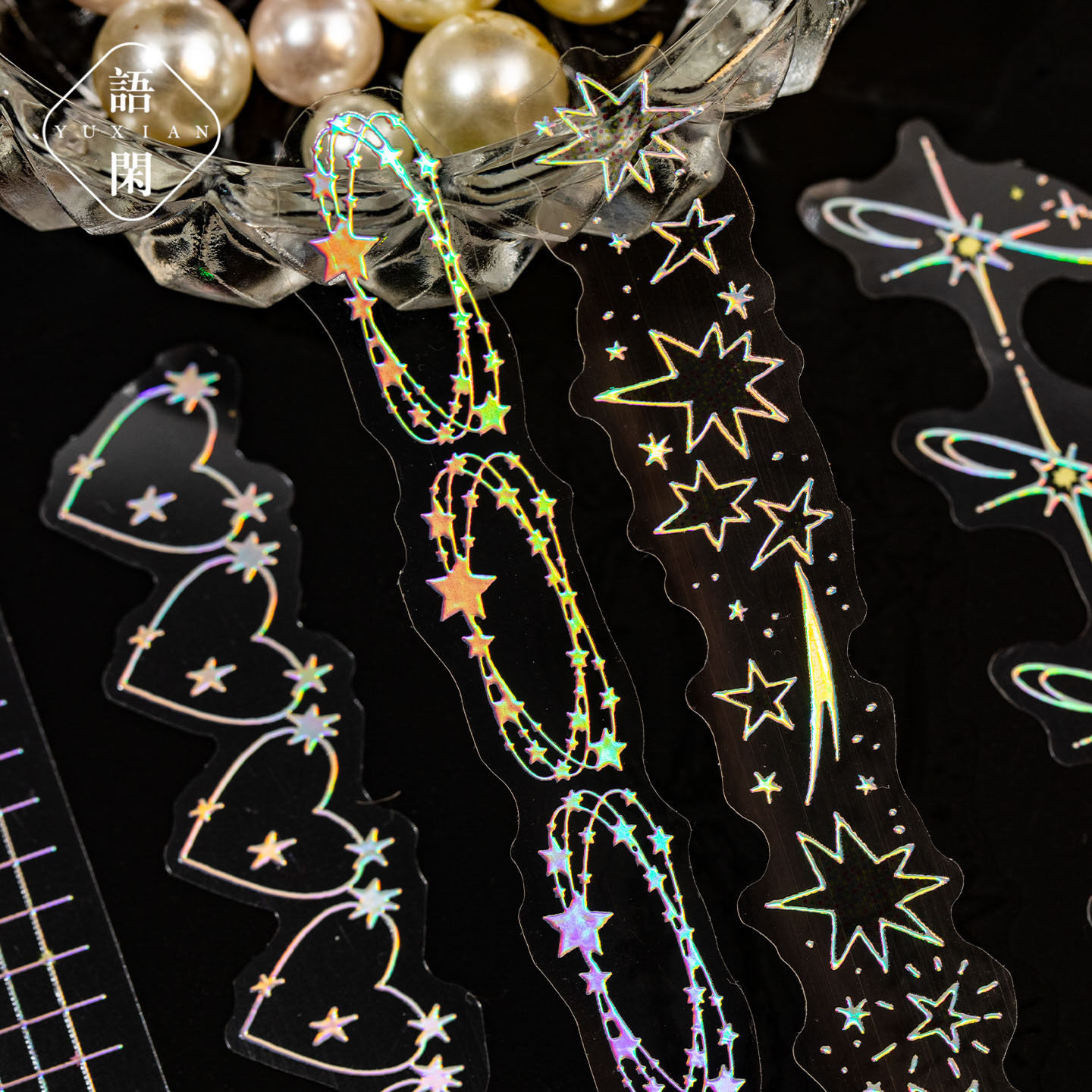 星光手帐系列防水pet镭射银长条贴纸包20张入 闪闪链条造景素材贴