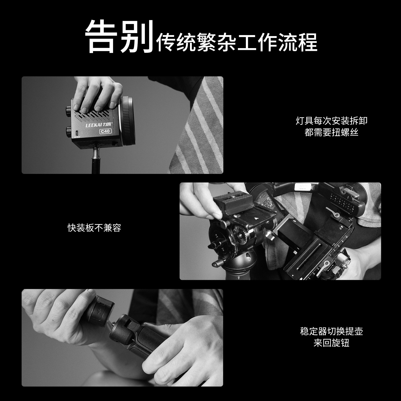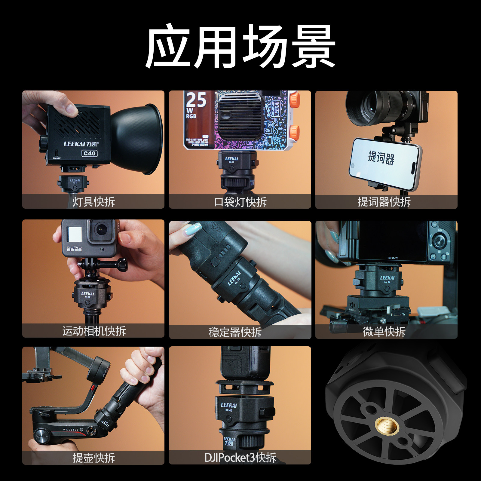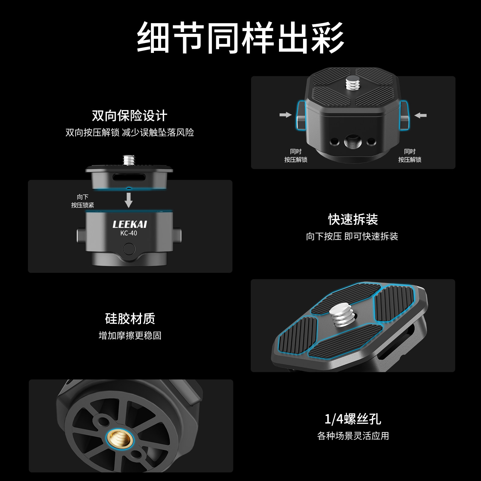 力凯KC40异爪快拆快装板通用兼容微单单反相机三脚架Gopro运动相机阿卡快拆板金属云台支架底座夹座套装配件