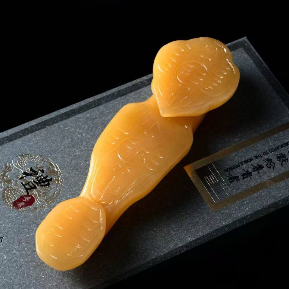 天然米黄玉二龙戏珠如意摆件玄关装饰摆设礼品玉石送礼桌面摆放