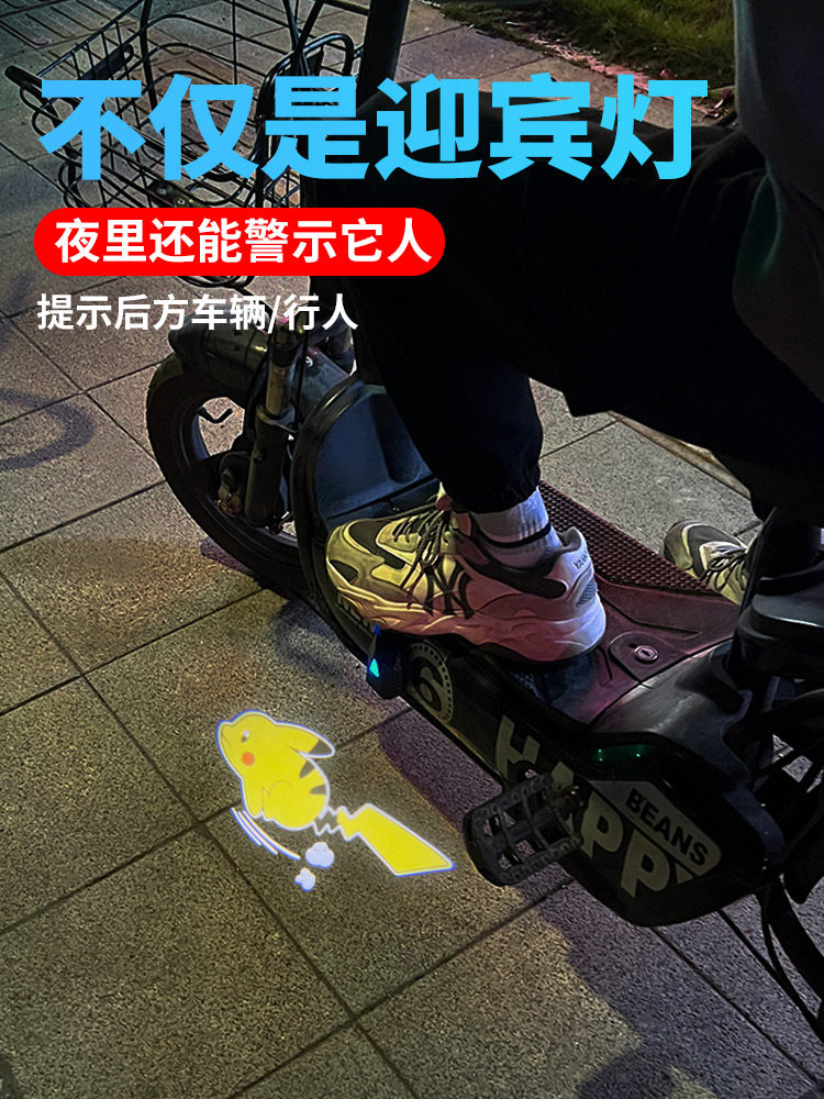 高清车门照地灯电动车投影灯摩托车动态皮卡丘车载汽车迎宾灯儿童自行车电瓶车投影仪免改装车用装饰用品大全