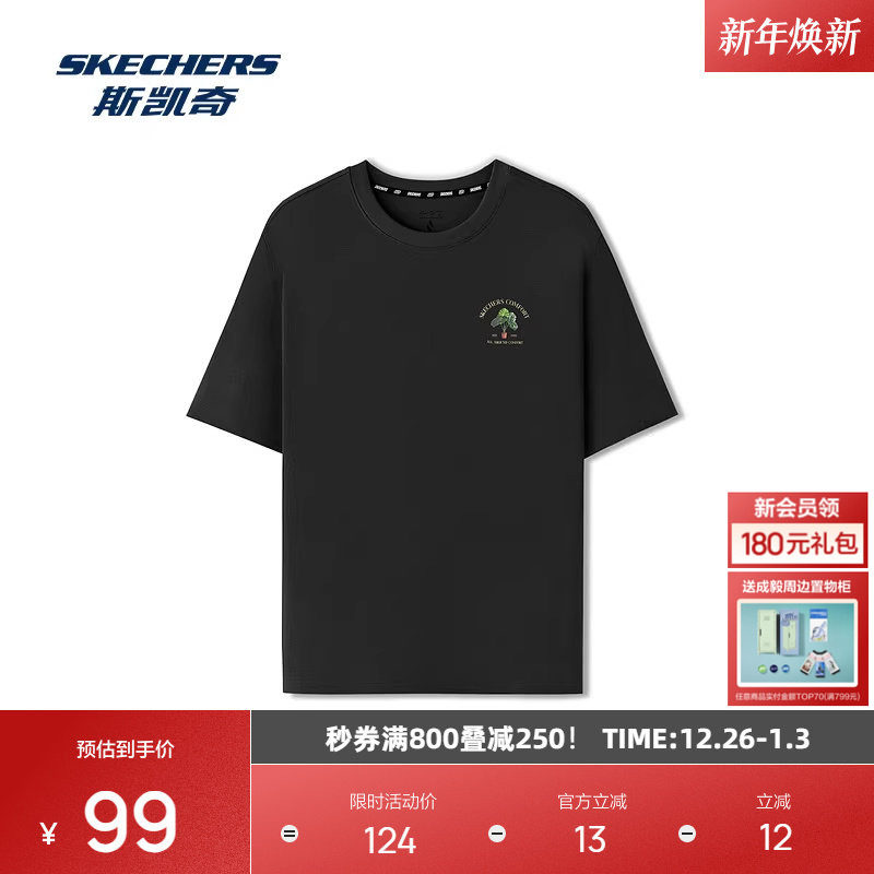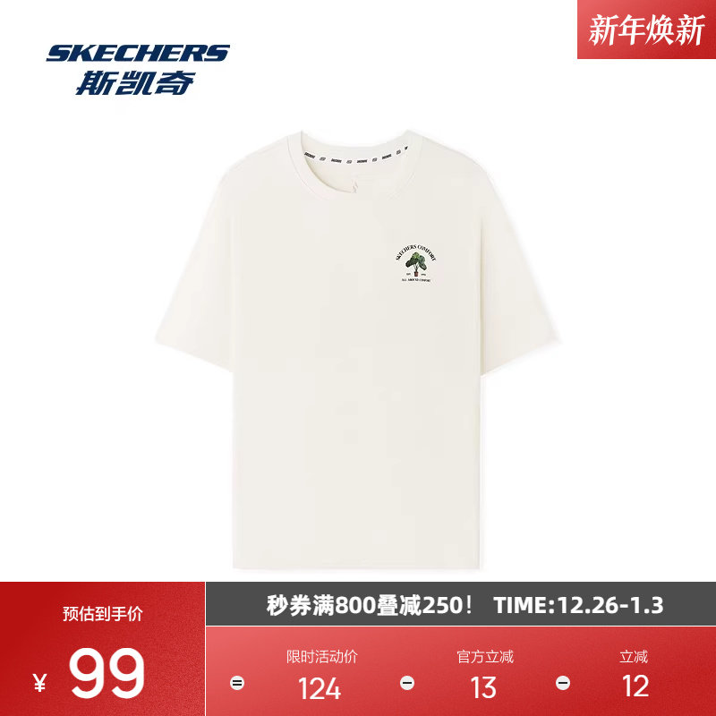 斯凯奇运动短袖2025年男女情侣宽松百搭T恤休闲舒适简约百搭