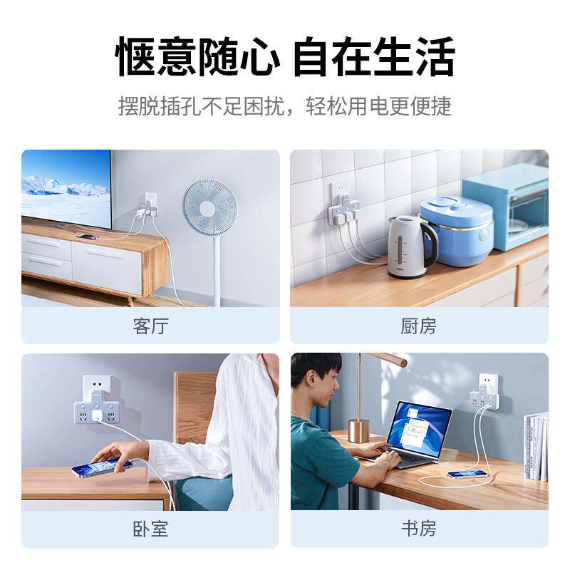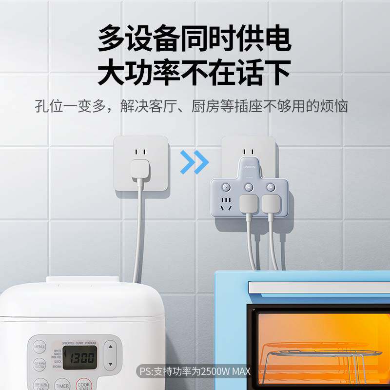 绿联插座转换器多功能插头扩展一转多二三插排面板多孔不带线插位