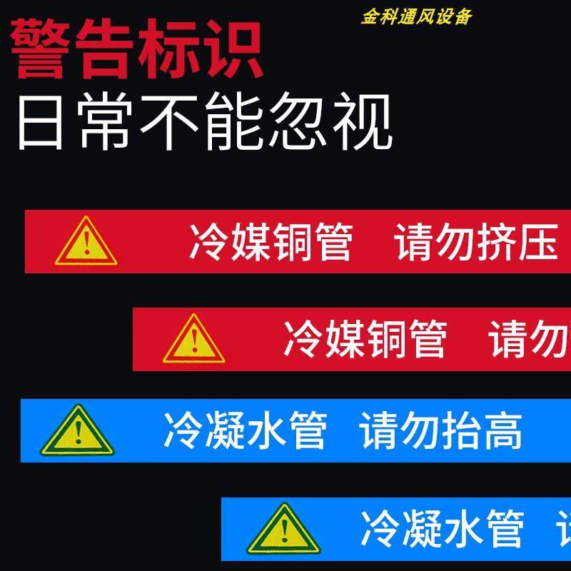 中央空调管道管路贴纸铜管水管空调安装提示标签警示语空调配件