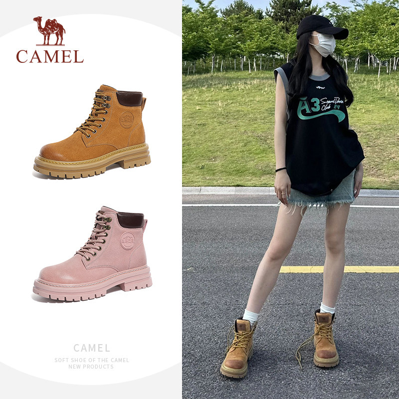 骆驼马丁靴女鞋秋冬短筒靴子女厚底增高大黄靴登山鞋