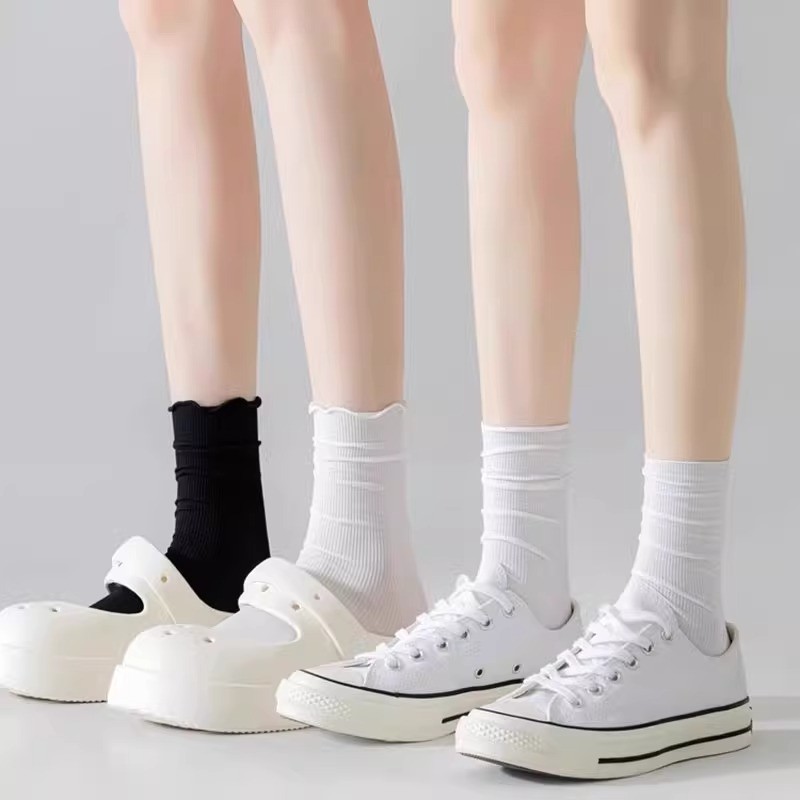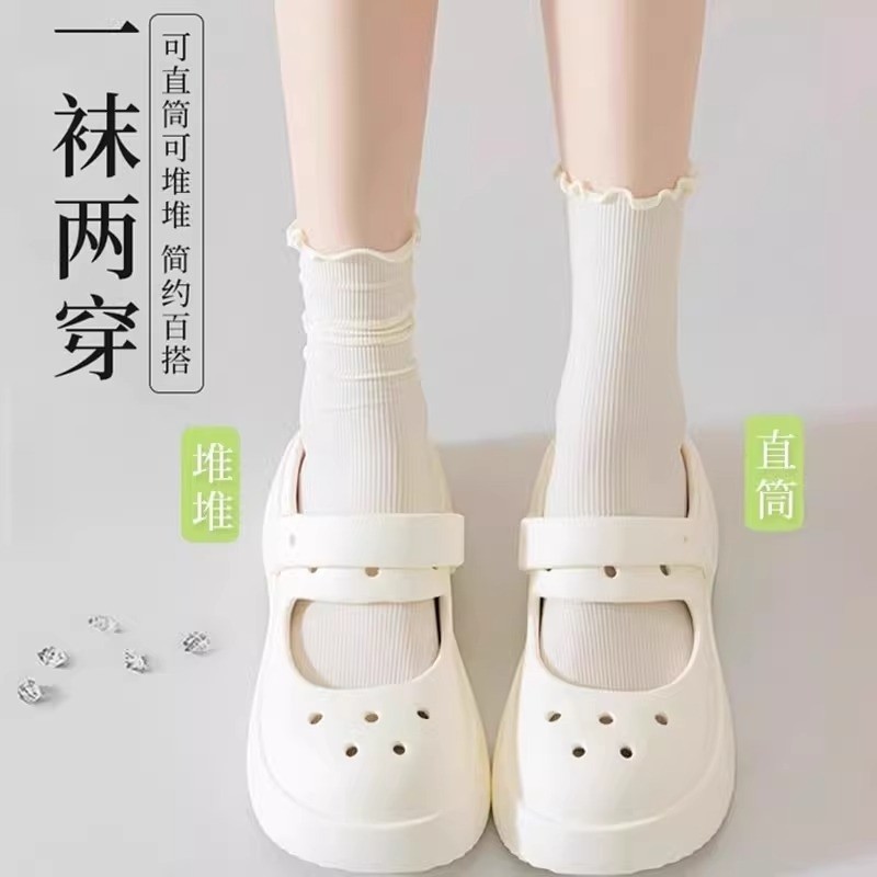 木耳边薄款袜女夏季花边天鹅绒透气中筒袜白色冰冰堆堆袜配乐福鞋