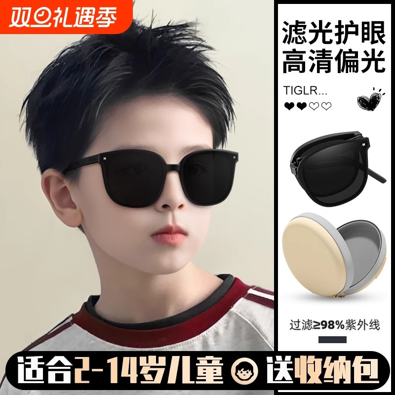 折叠儿童墨镜男童防紫外线女童不伤眼睛宝宝男孩偏光太阳眼镜圆脸
