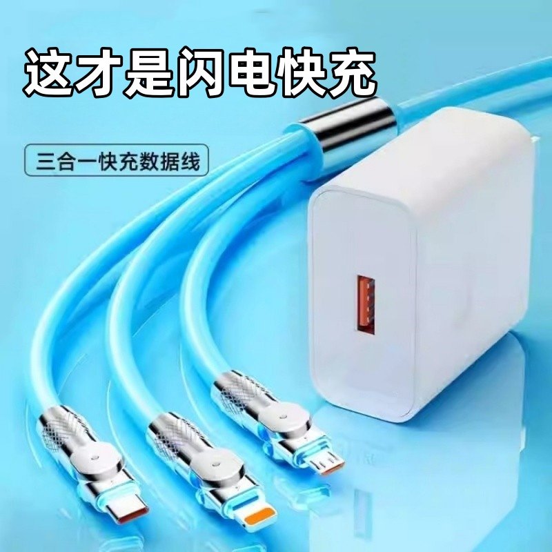 快充三合一套装适用苹果小米vivo华为OPPO一拖三Typec安卓数据线充电线器多头多功能三头手机车载