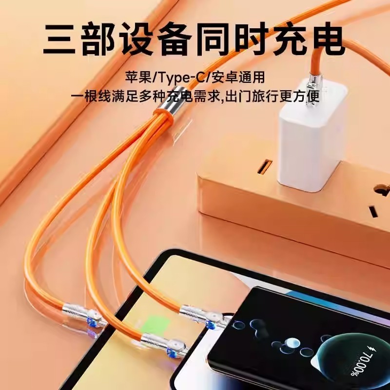 适用苹果小米vivo华为oppo三合一套装数据线充电线器一拖三Typec安卓多头多功能三头手机车载