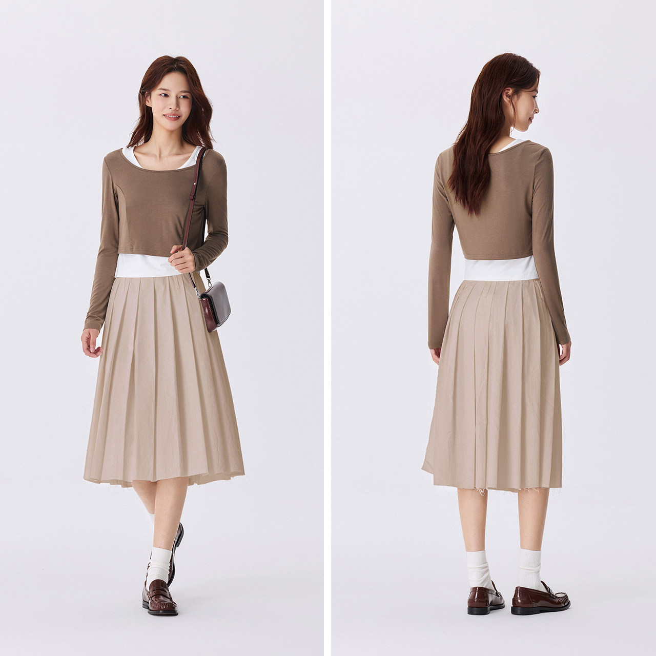 短款更显腿长 纯色两件套更实穿