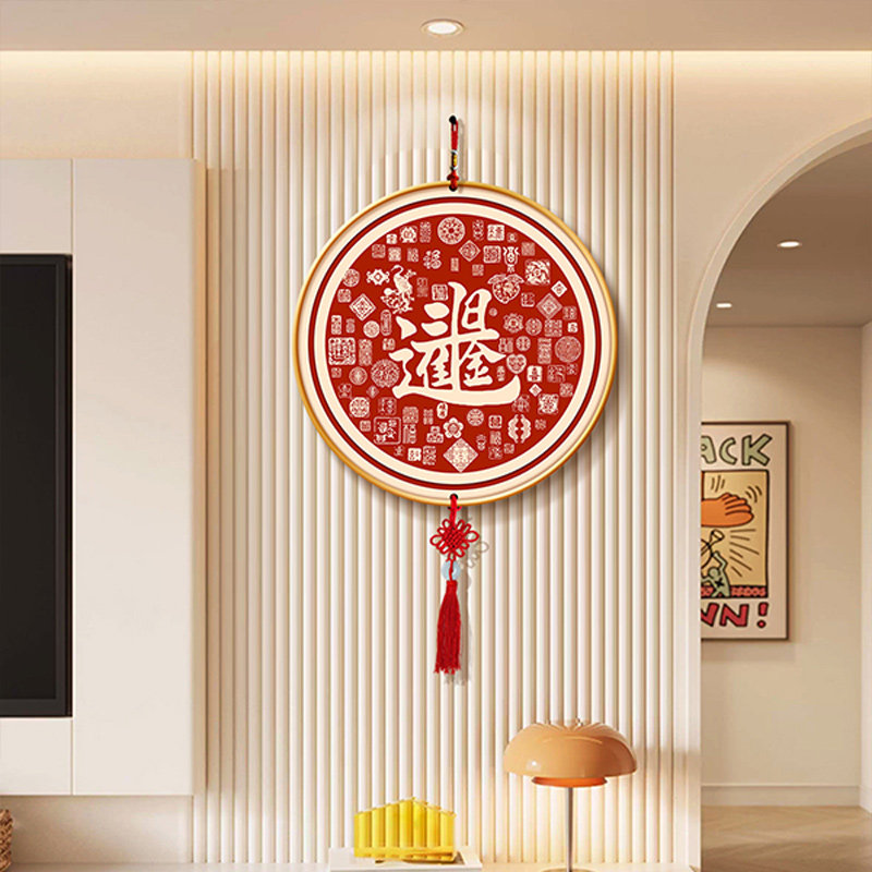 新中式福字挂件客厅电视背景墙挂饰装饰画中国结圆形壁饰挂画年味