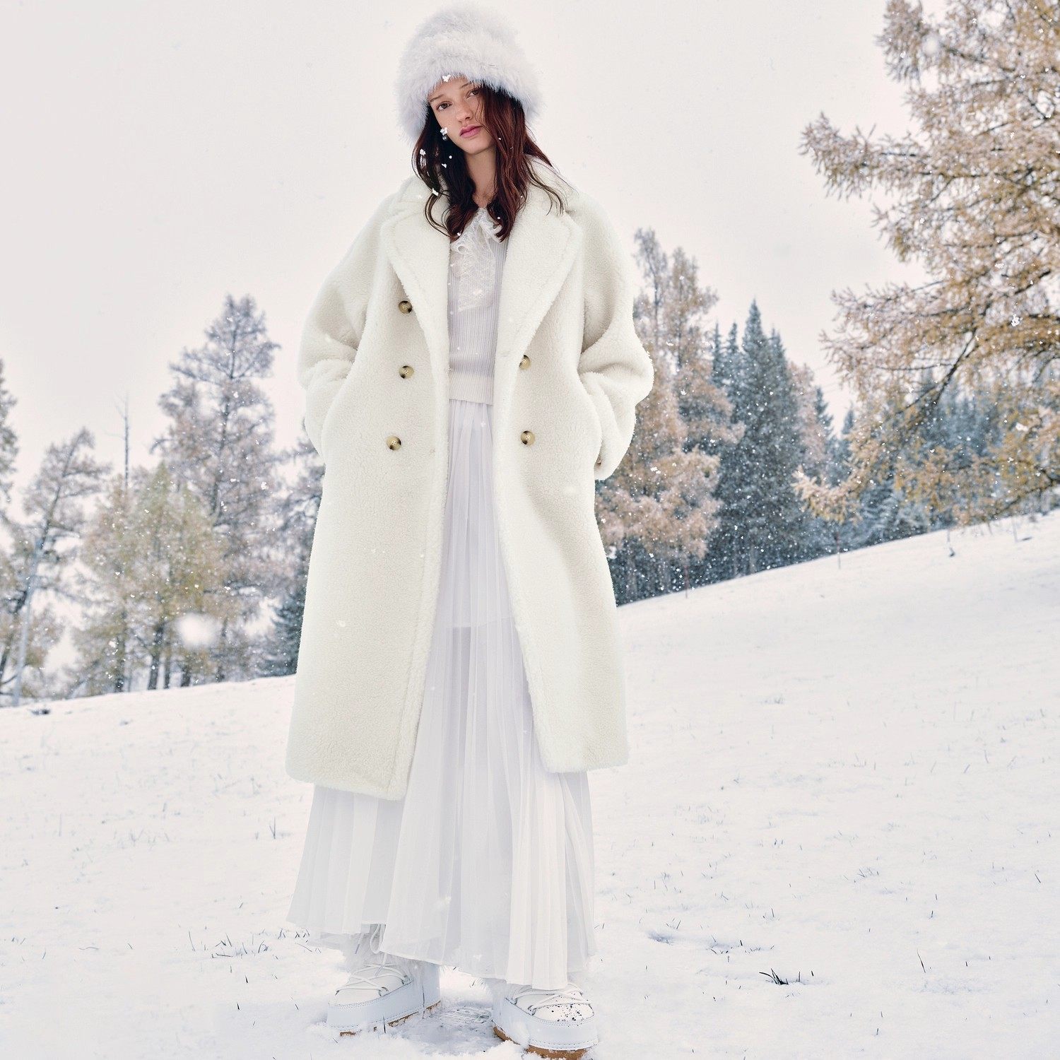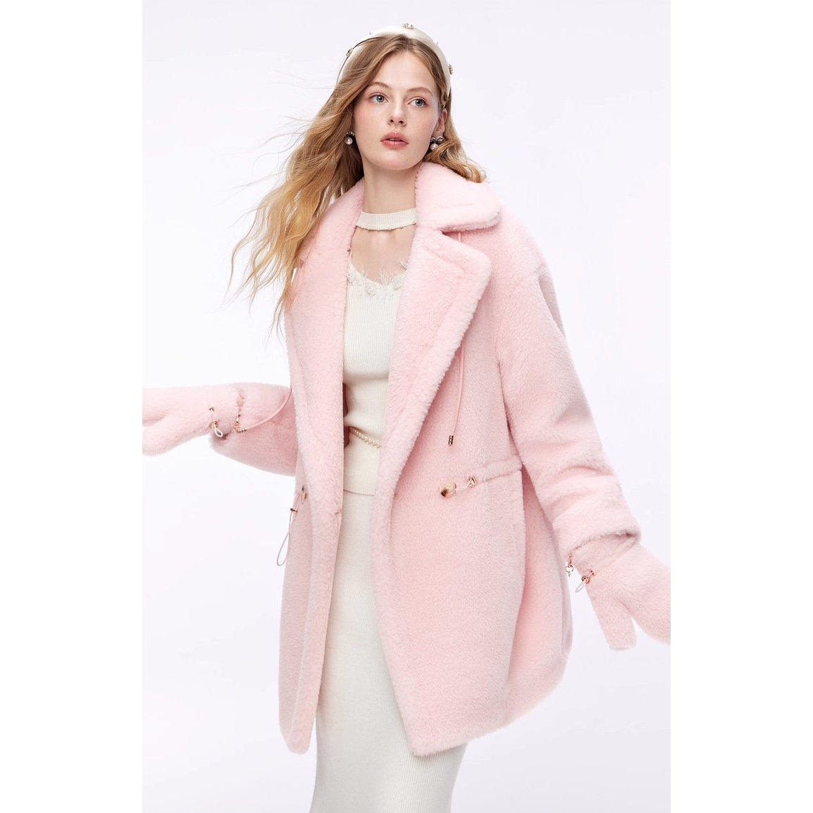 MISSCOCOON可可尼粉色毛毛外套女2025冬季新款收腰绵羊毛皮草大衣