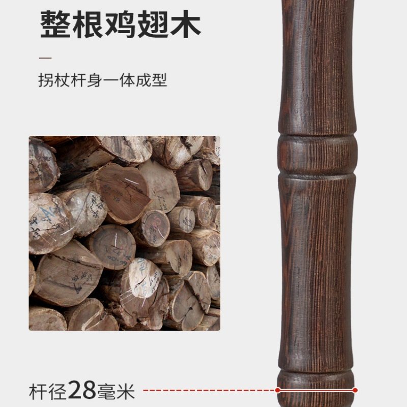 红木四脚老年人拐杖老人防滑防摔轻便木头鸡翅木手杖实木拐棍捌杖