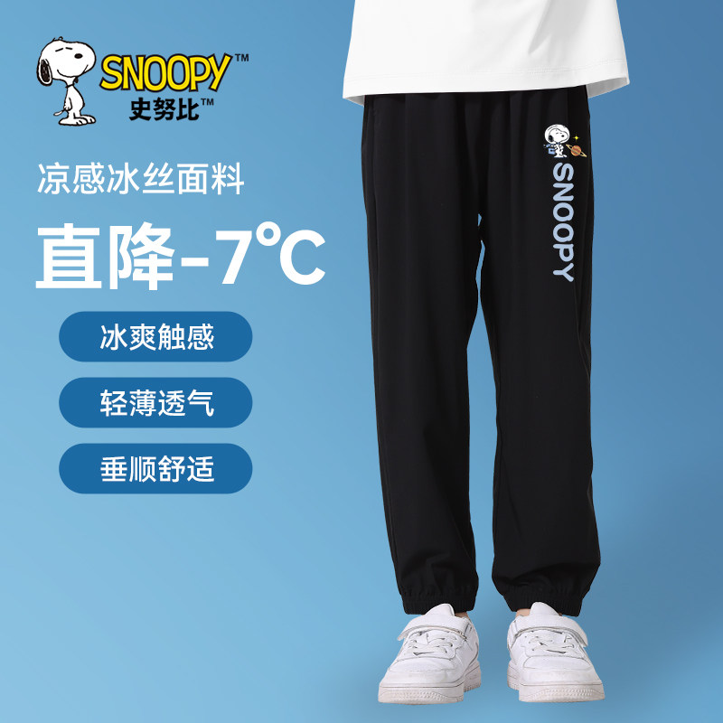 史努比男童速干裤夏季薄款2025新款男大童透气裤子儿童冰丝运动裤