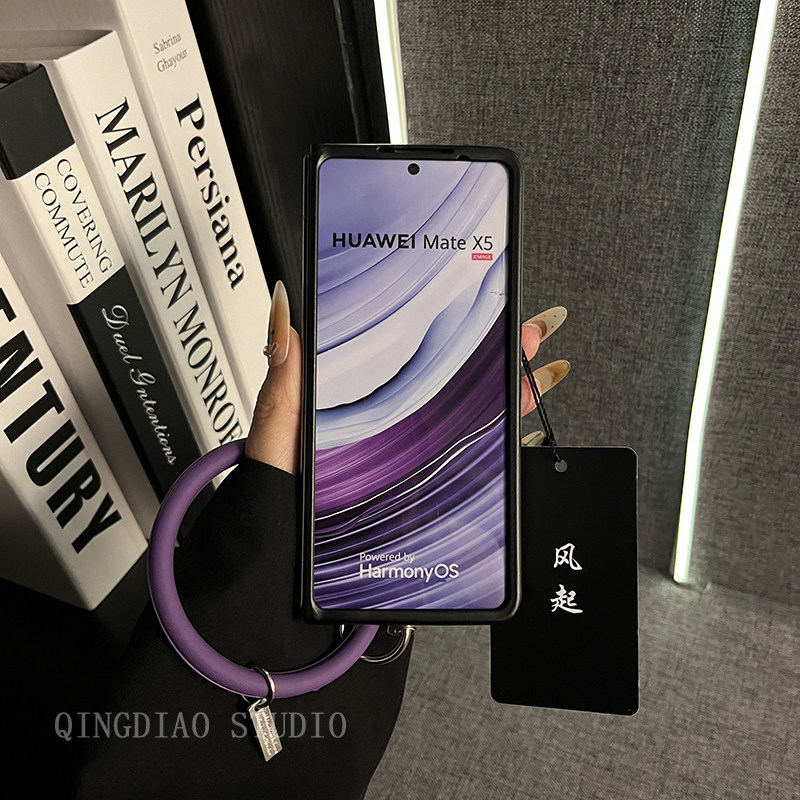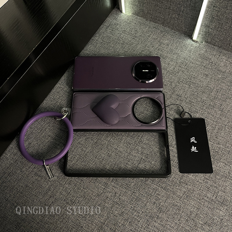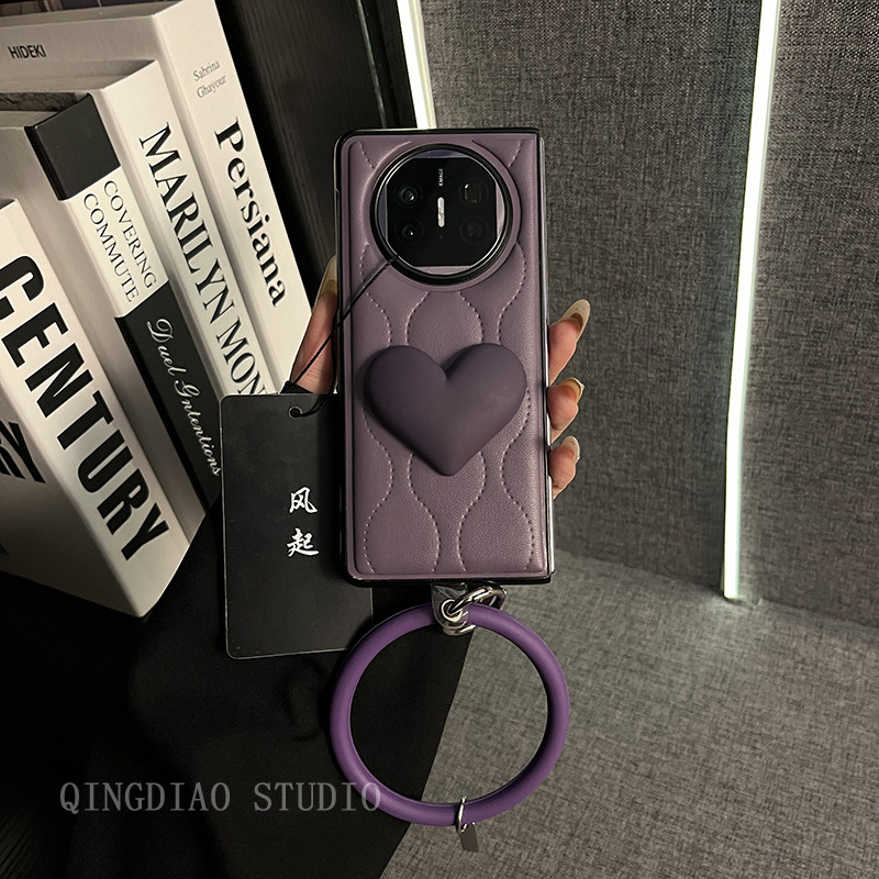 日韩水波浪纹立体爱心手提环适用华为matex6/x5/3/2手机壳新款折叠屏高档商务MATE X3典藏版翻盖防摔保护套