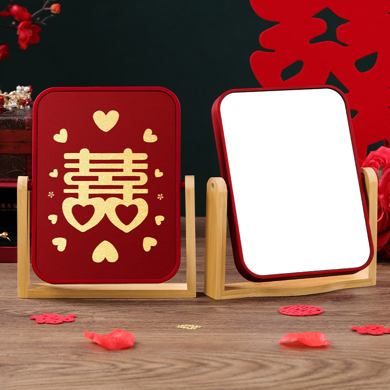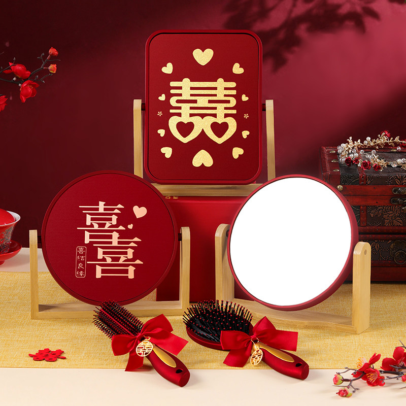 结婚新娘红色梳妆喜镜婚礼镜子梳子一对套装新婚女方陪嫁用品大全