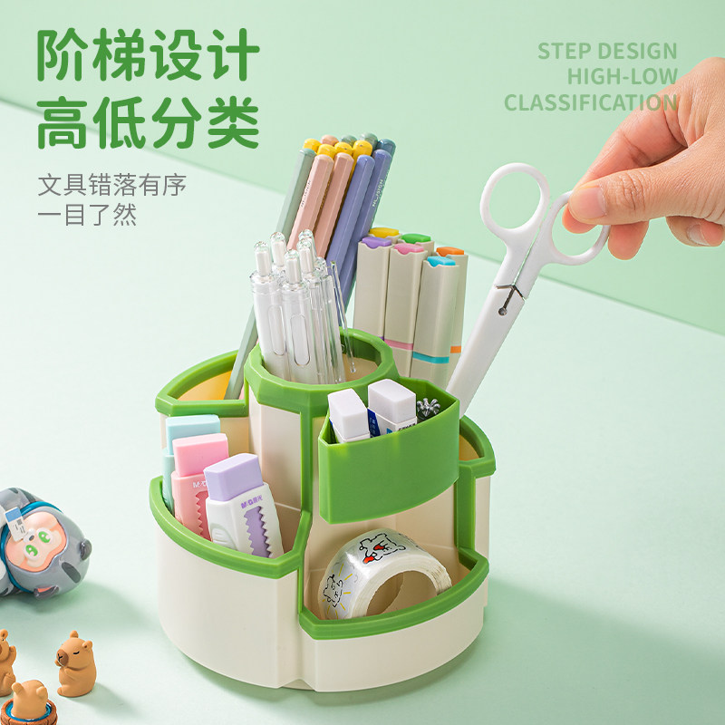 360°旋转笔筒多功能大容量小学生书桌面加厚笔类文具收纳盒多格学生笔桶男生创意可爱儿童女孩款放装笔架ins