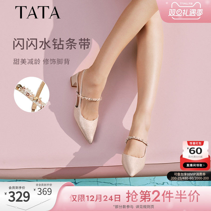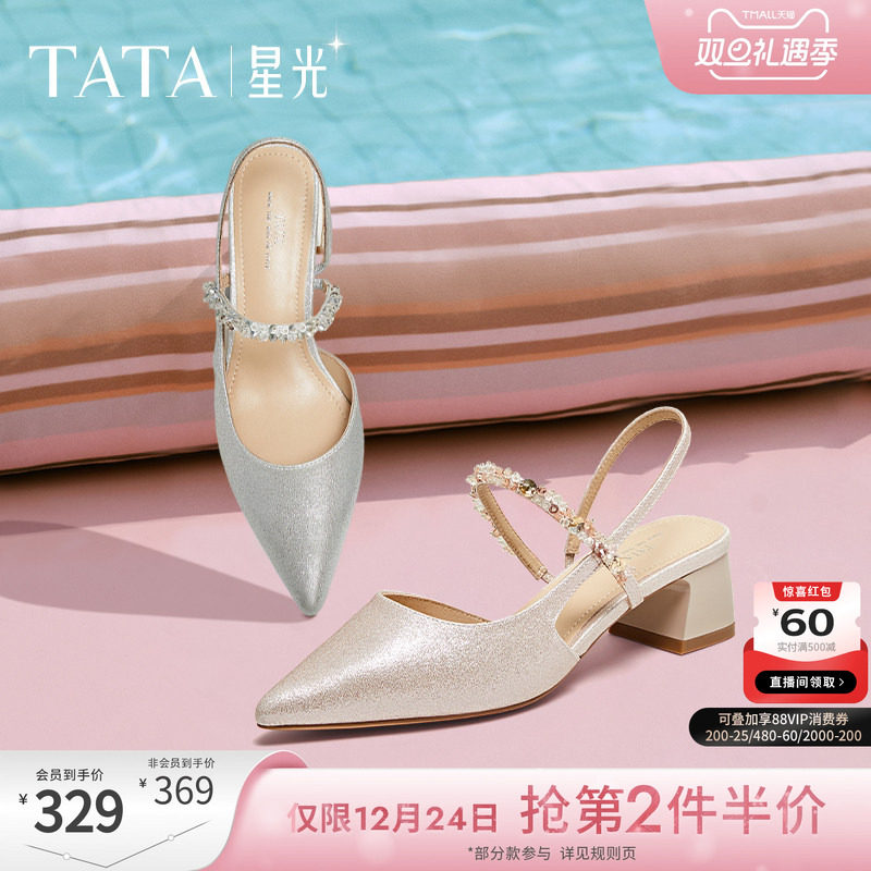 TATA他她星光法式气质包头凉鞋女鞋粗跟后空凉鞋2025新款7GY03BH5