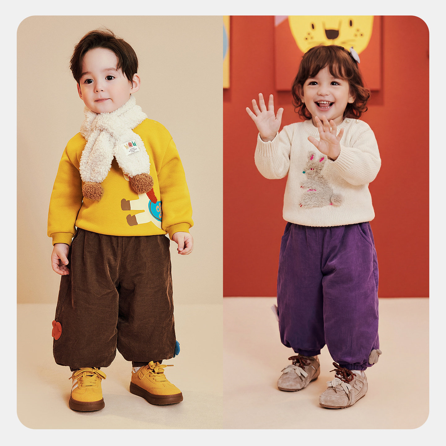 迷你巴拉巴拉男女童宝宝裤子冬新品内里夹棉纯棉灯芯绒泡泡裤