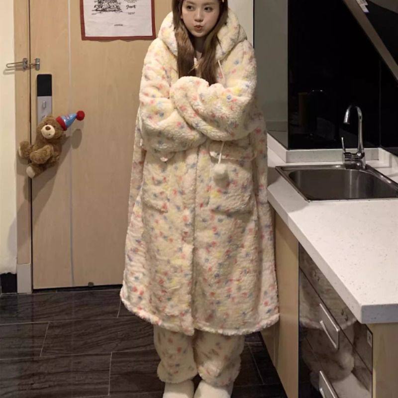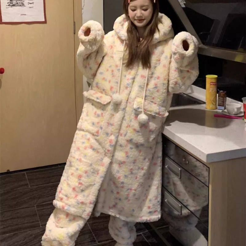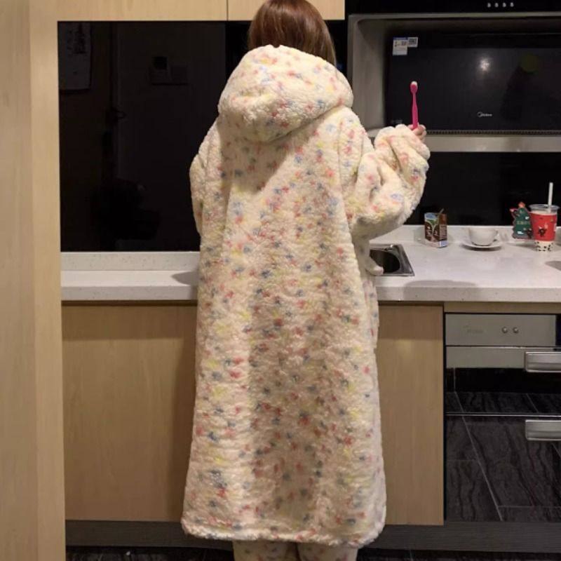 【三层加厚】冬保暖睡衣家居服套装中长款睡袍毛绒浴袍加厚情侣款