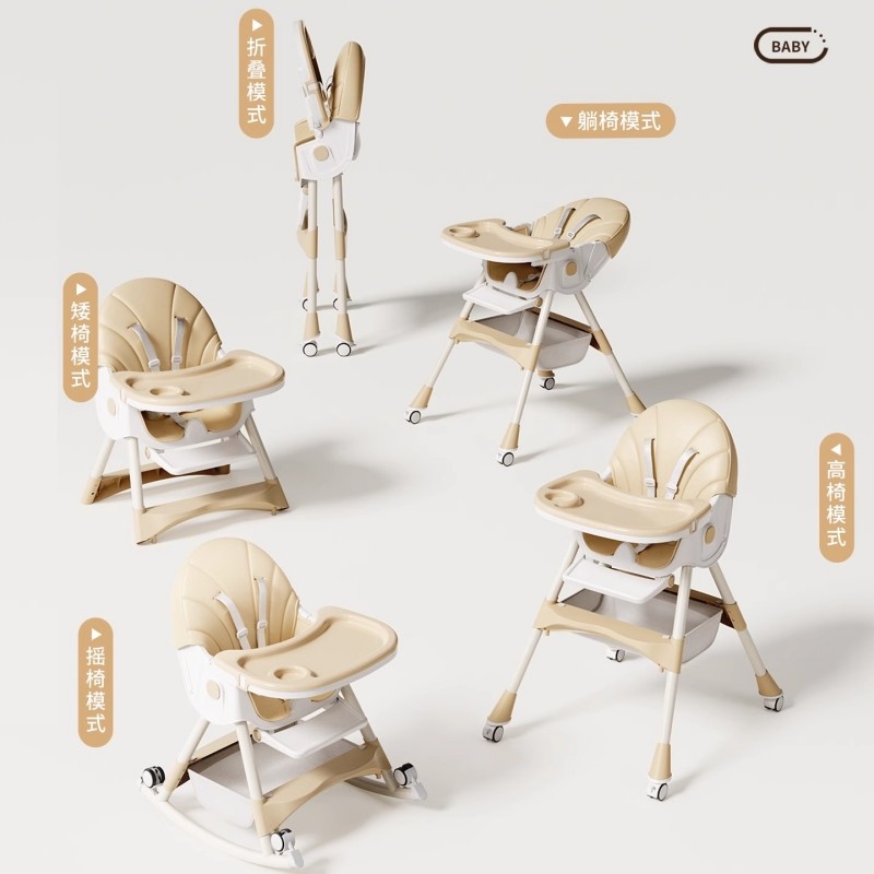 宝宝餐椅儿童吃饭椅子可折叠便携座椅家用婴儿餐桌椅可坐可躺摇马