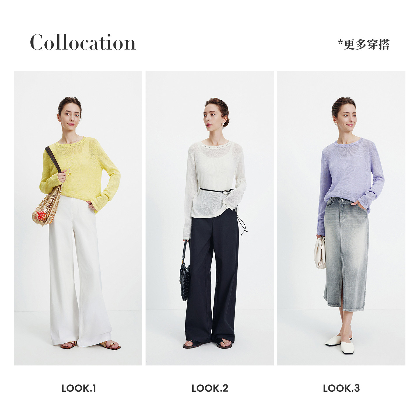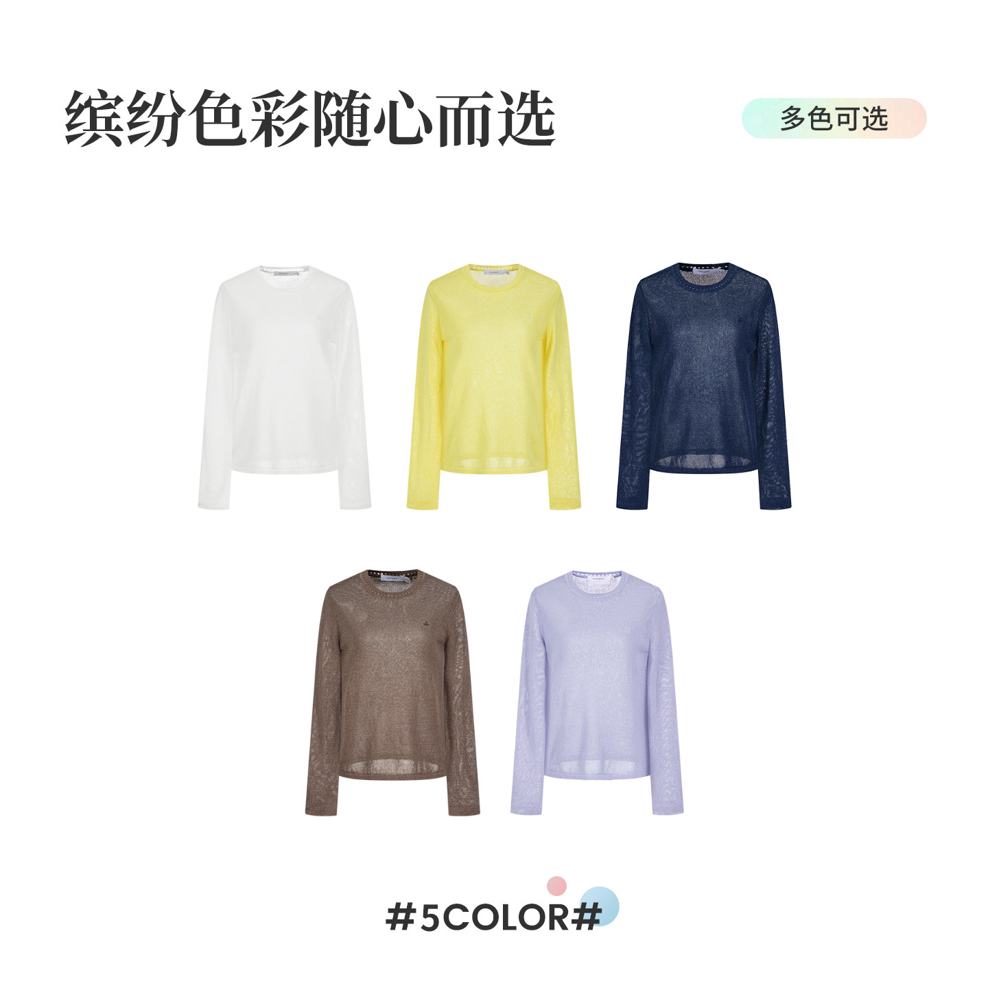 三福长袖上衣2025新款秋季圆领修身针织衫简约纯色内搭打底衫女装