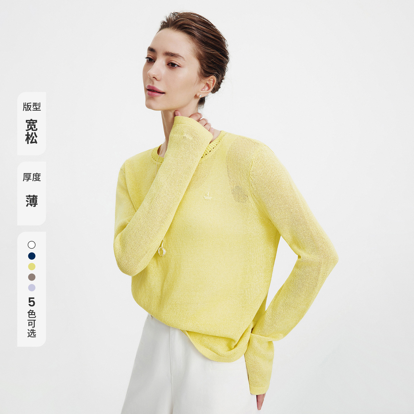 Navigare意大利小帆船时尚黄色针织衫女长袖2026春季薄款圆领罩衫