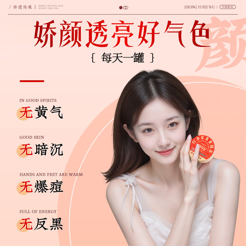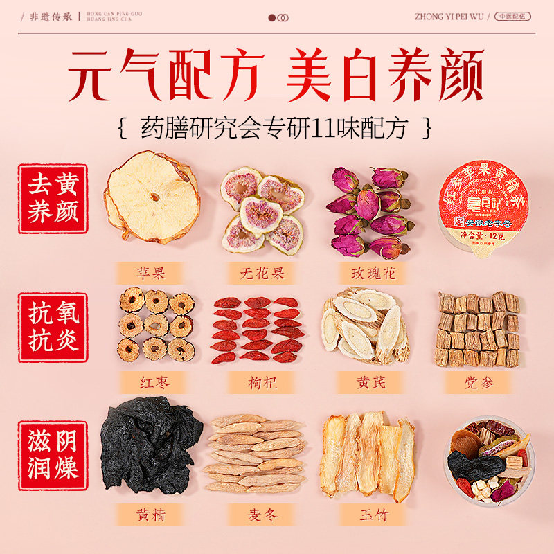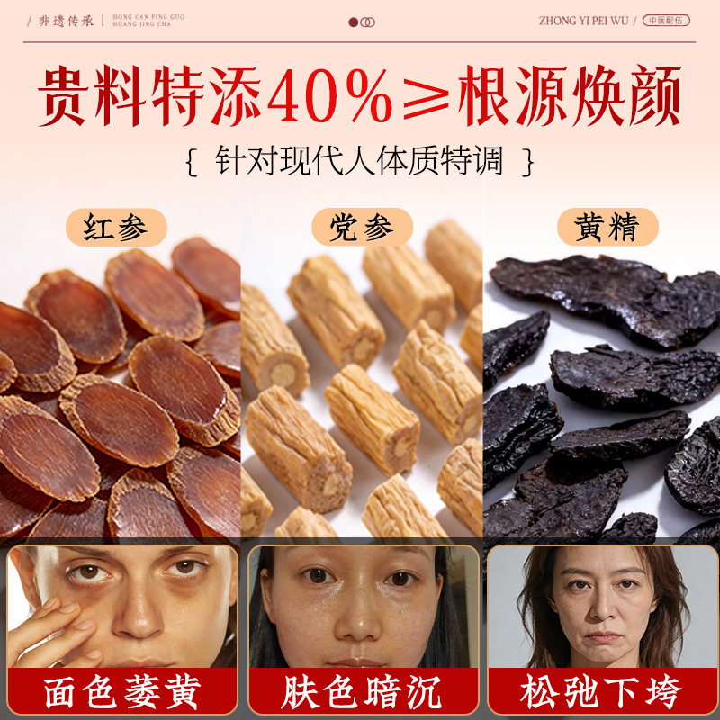 亳食记苹果黄芪水红参黄精茶补气养血素颜女神茶熬夜脸黄养生茶