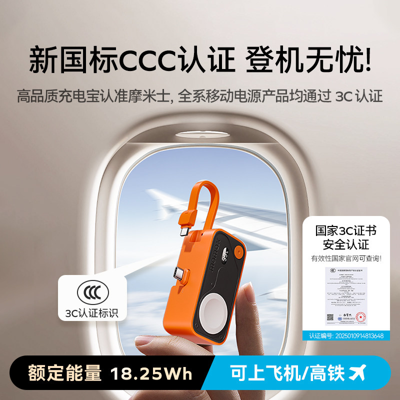 【3C认证可上飞机】MOMAX摩米士2026新款口袋胶囊充电宝自带线快充便携适用苹果17iPhone Watch手表移动电源