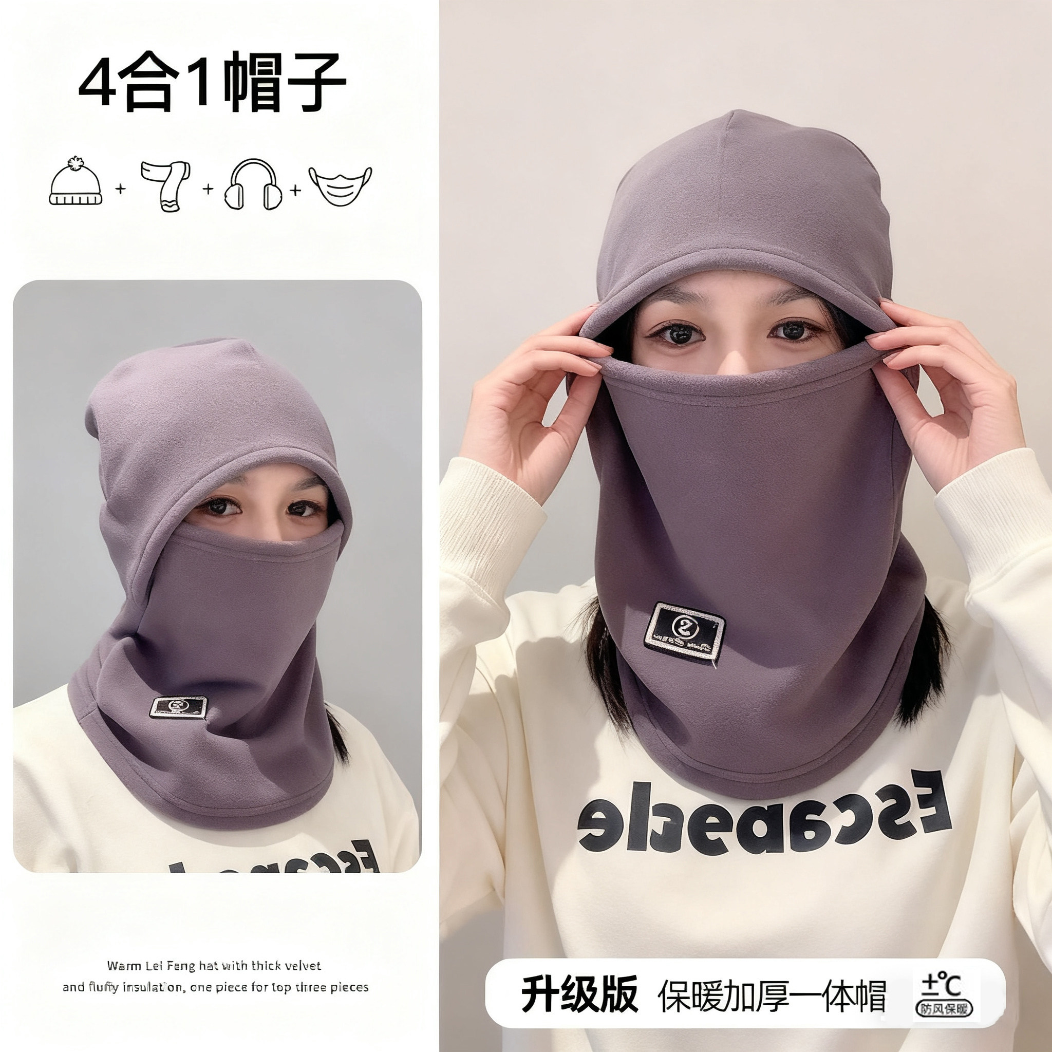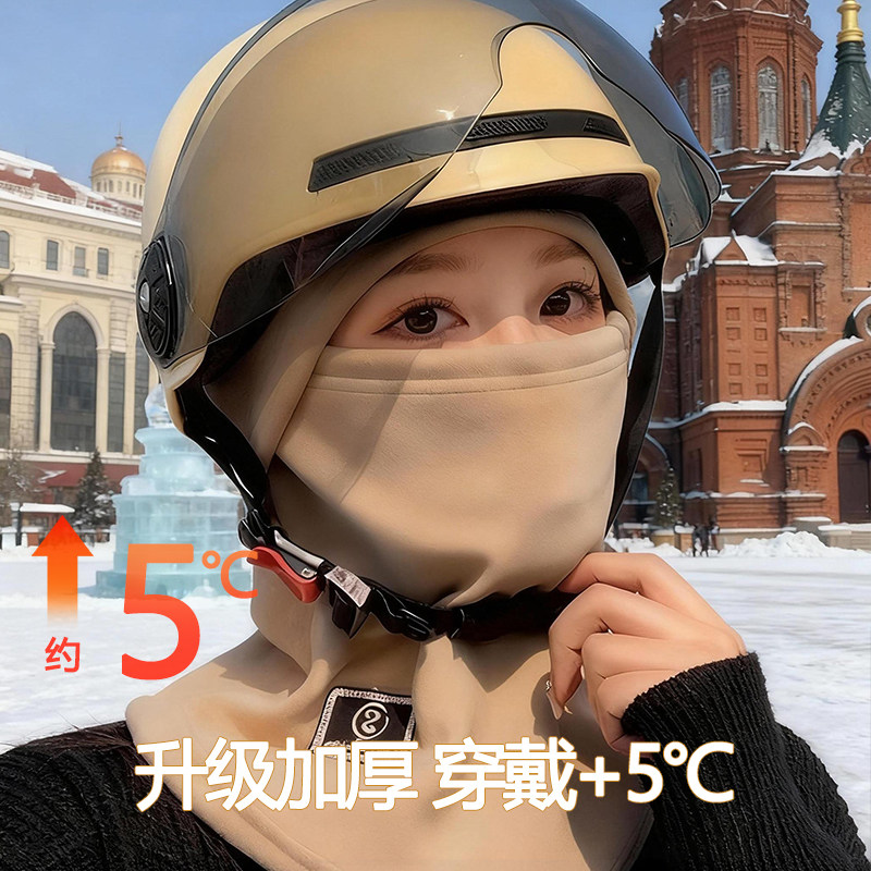冬季骑车面罩围脖帽子一体男女冬北套头盔内胆帽加绒保暖护耳防寒