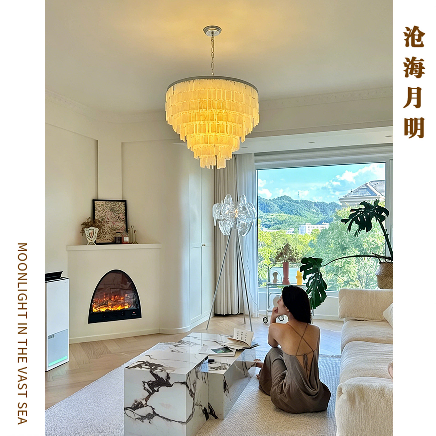 轻法美式复古客餐厅卧室loft小复式酒店别墅高端风铃银箔贝壳吊灯